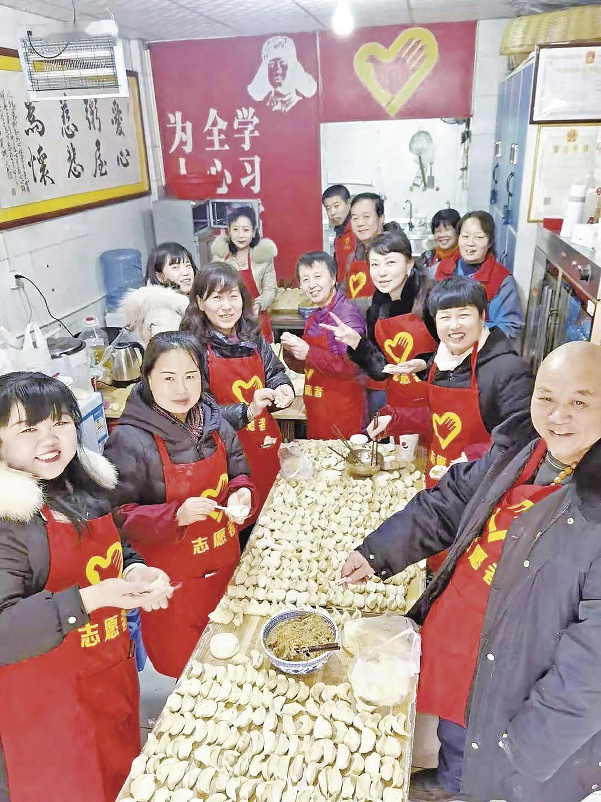 陳笑與志愿們包餃子。 通訊員 劉會斌 攝