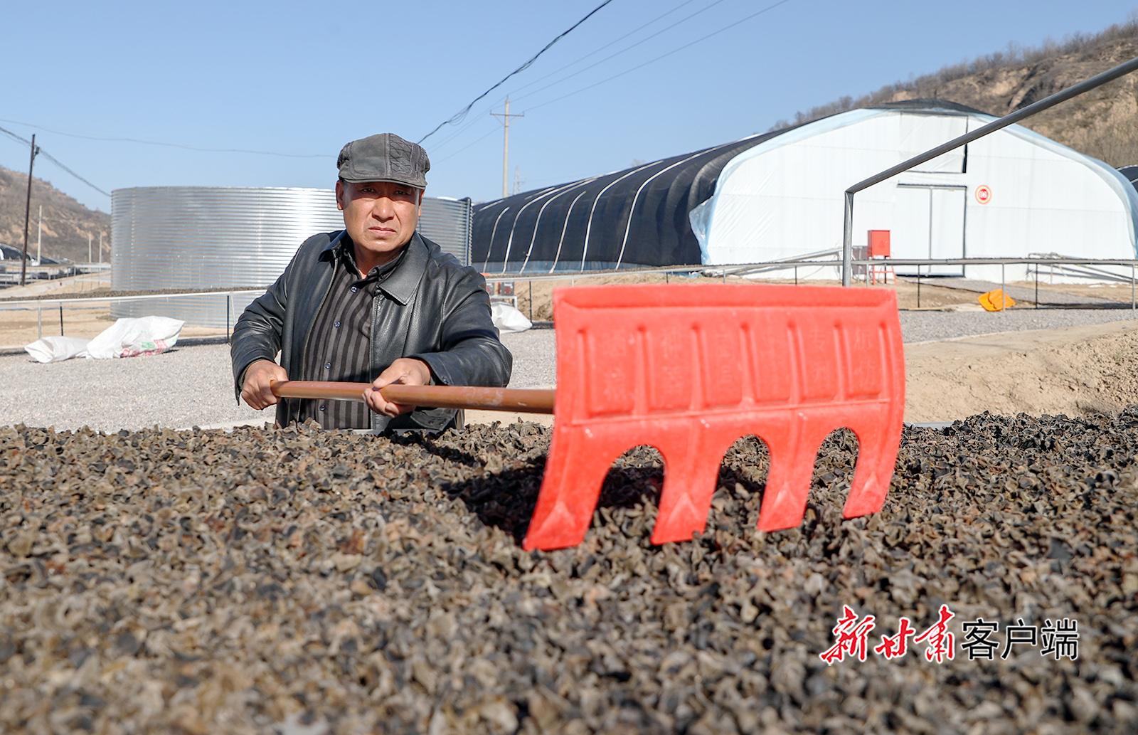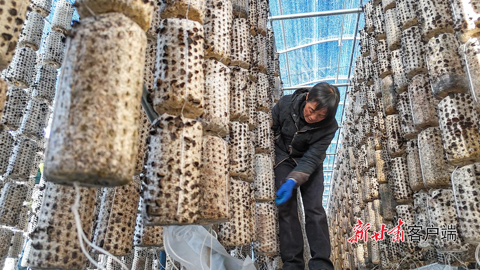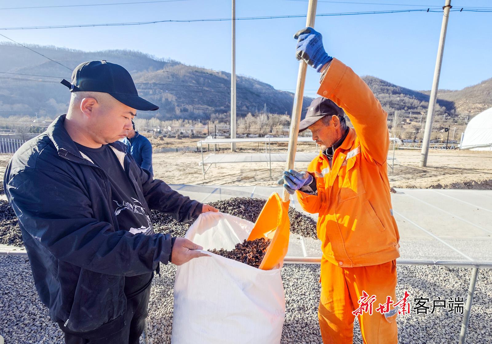 11月25日,合水縣老城鎮(zhèn)木耳出口產(chǎn)業(yè)園,農(nóng)戶正在采收、晾曬木耳。
