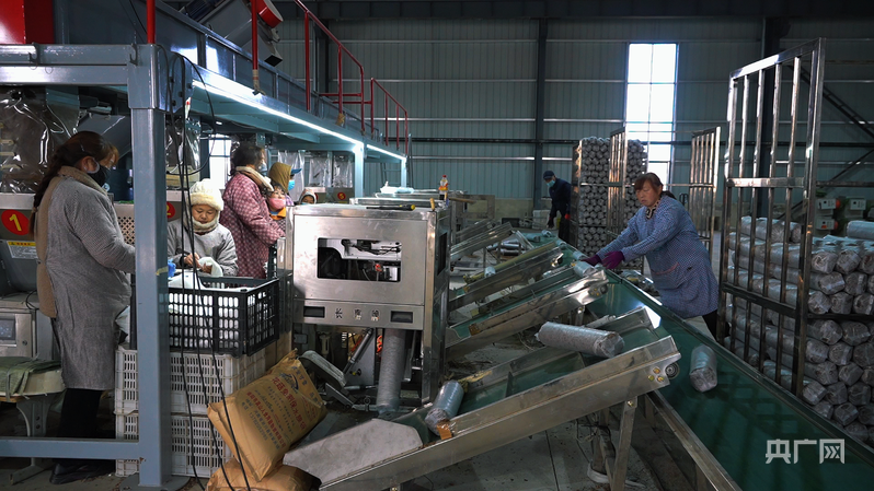 菌棒生產(chǎn)車間工人加工香菇菌棒(央廣網(wǎng)發(fā) 張煜晨 攝)
