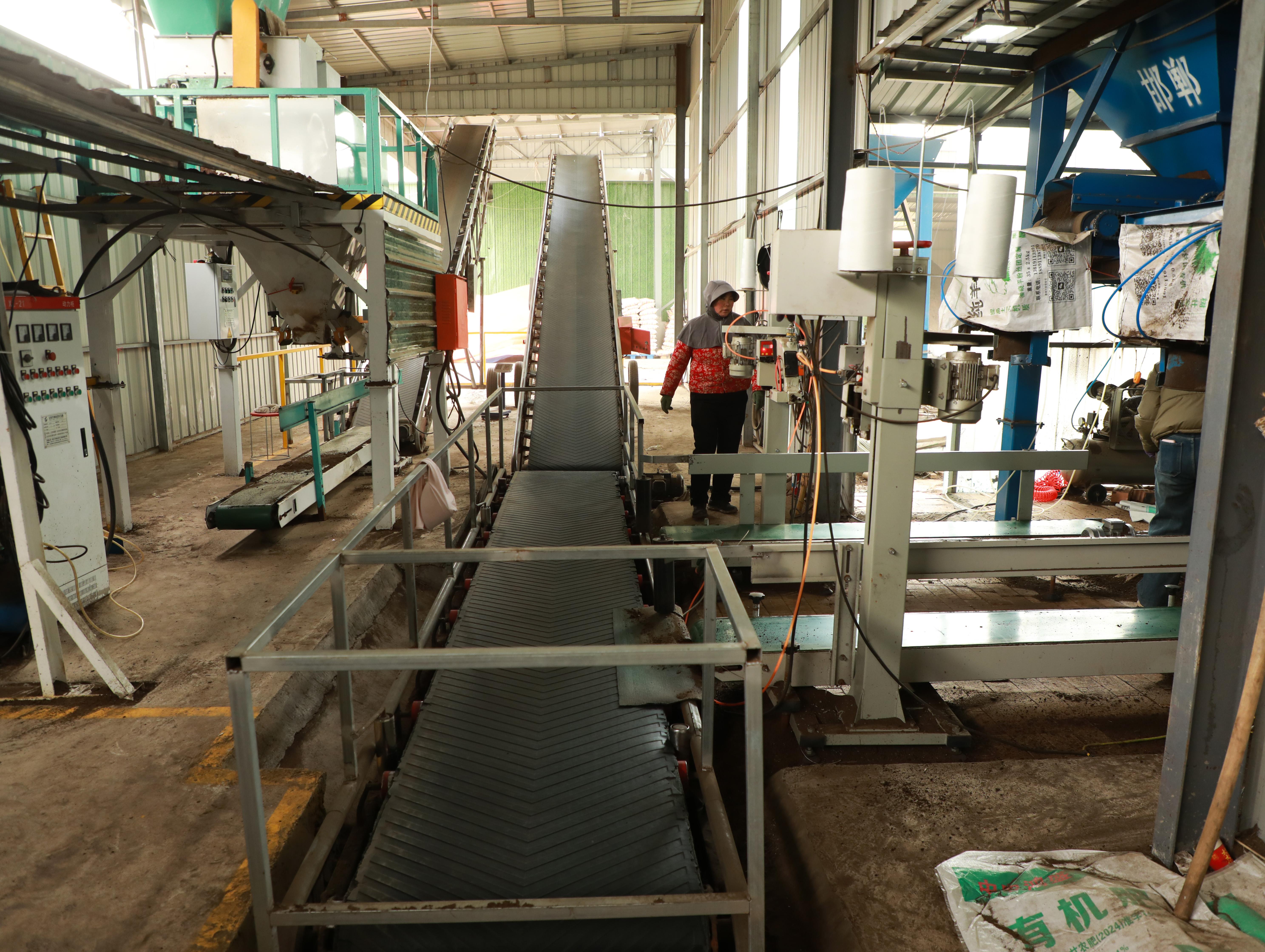 “從今年廠子開工我就來這里工作,工作時間也相對寬松?!?2歲的洪德鎮(zhèn)趙洼村村民蘇拴萍手法嫻熟,臉上洋溢著笑容,“家就在附近,工作靈活還能照顧家里?!痹谒磉?,同樣來自周邊村莊的工人們各司其職,將一袋袋封裝好的有機肥成品擺放整齊。