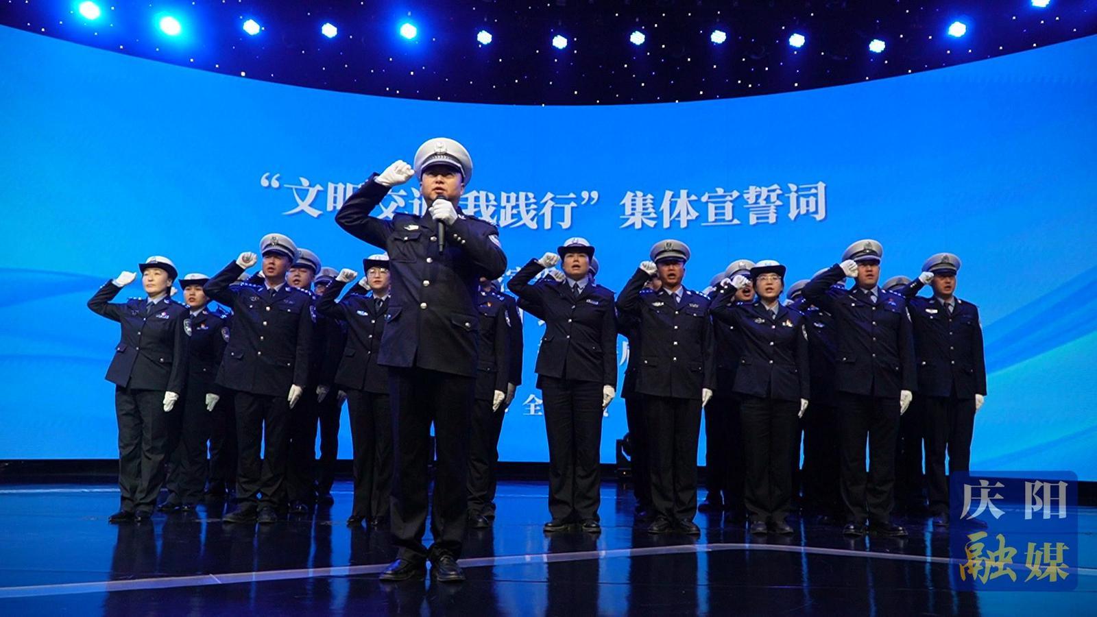 活動(dòng)現(xiàn)場(chǎng),一段《2025年慶陽(yáng)公安交警感人瞬間》視頻,深情展現(xiàn)了交通守護(hù)者們的堅(jiān)守與奉獻(xiàn)。現(xiàn)場(chǎng)展播了從620件參賽作品中脫穎而出的優(yōu)秀征文、攝影、繪畫和短視頻,創(chuàng)作者們用文字、鏡頭和畫筆,生動(dòng)詮釋了對(duì)文明交通的理解與呼吁。新聘的“文明交通宣傳員”和“金牌交通安全宣講員”接過了傳遞安全理念的接力棒。在領(lǐng)誓人的帶領(lǐng)下,全場(chǎng)共同發(fā)出“文明交通、禮行天下”的鏗鏘誓言,將現(xiàn)場(chǎng)氣氛推向高潮。