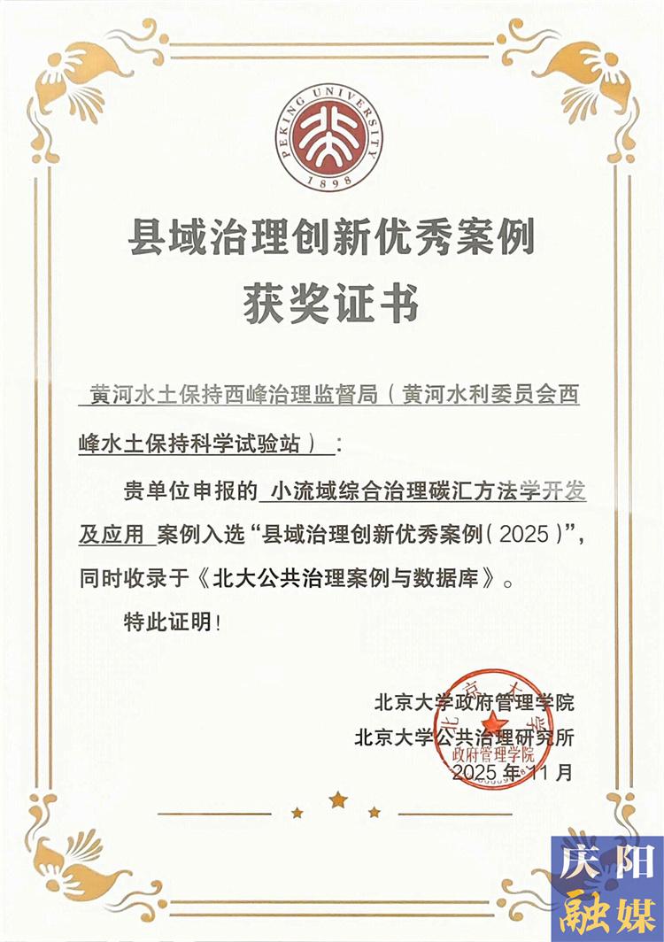 黃河水土保持西峰治理監(jiān)督局(以下簡稱“西峰局”)憑借創(chuàng)新案例《小流域綜合治理碳匯方法學(xué)開發(fā)及應(yīng)用》,成功入選“縣域治理創(chuàng)新優(yōu)秀案例(2025)”,并在“產(chǎn)業(yè)興縣”板塊作了題為“水土保持與縣域善治:黃土高原溝壑區(qū)的治理范式與創(chuàng)新實(shí)踐”的專題發(fā)言,向全國展示了將水土保持生態(tài)效益轉(zhuǎn)化為縣域高質(zhì)量發(fā)展動(dòng)能的新路徑。