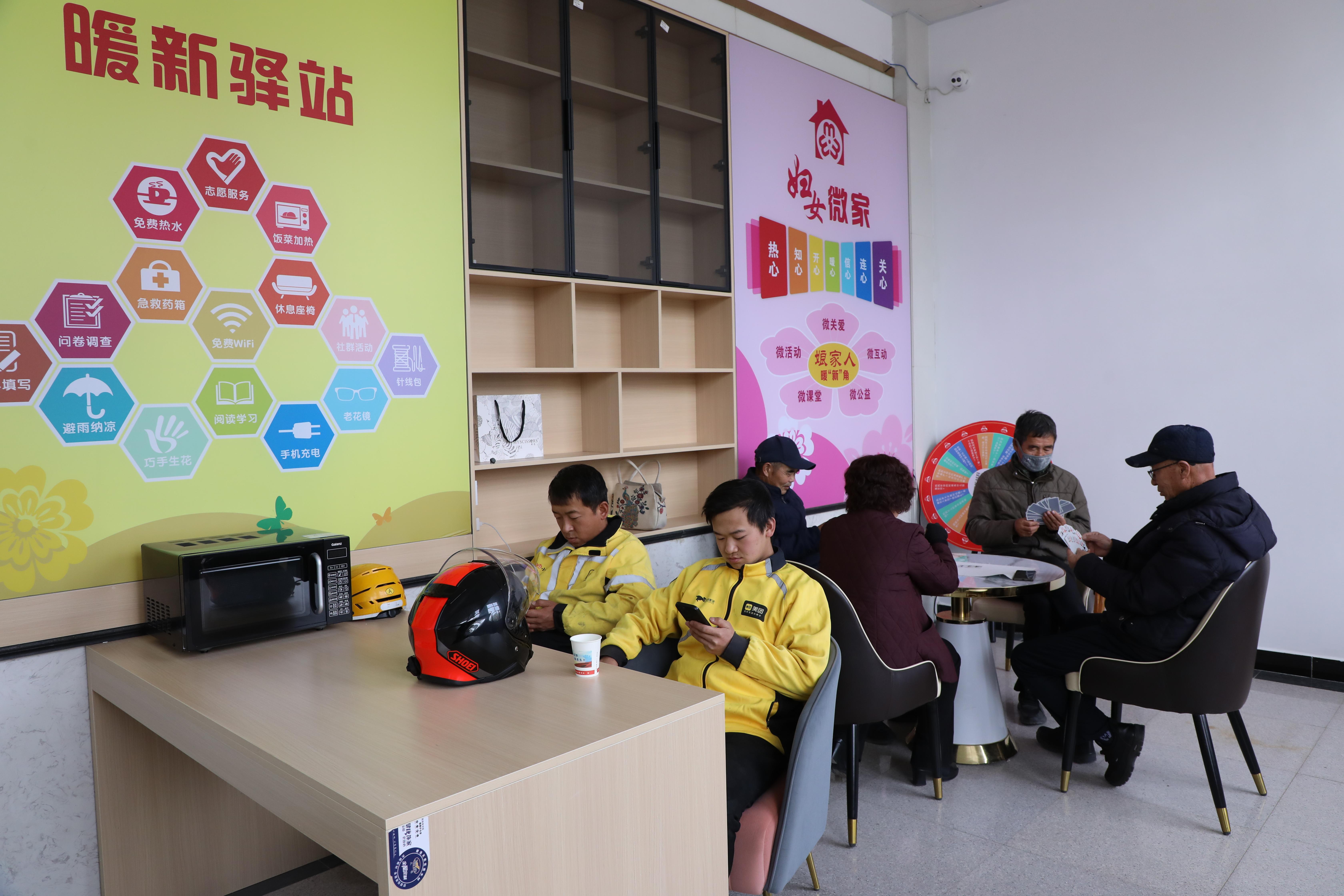 “夏天能避暑,冬天能取暖,有個(gè)歇腳的地方,心里踏實(shí)?!边@個(gè)小小的驛站,配有醫(yī)藥箱、微波爐、充電設(shè)備,成了奔波在城市街巷的“小哥”們短暫的加油站。