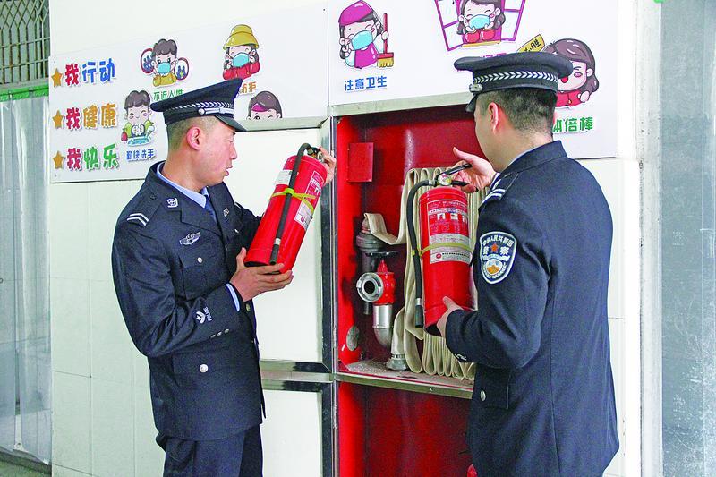 民警檢查社區(qū)消防設(shè)施。 慶陽(yáng)融媒記者 李建強(qiáng) 攝