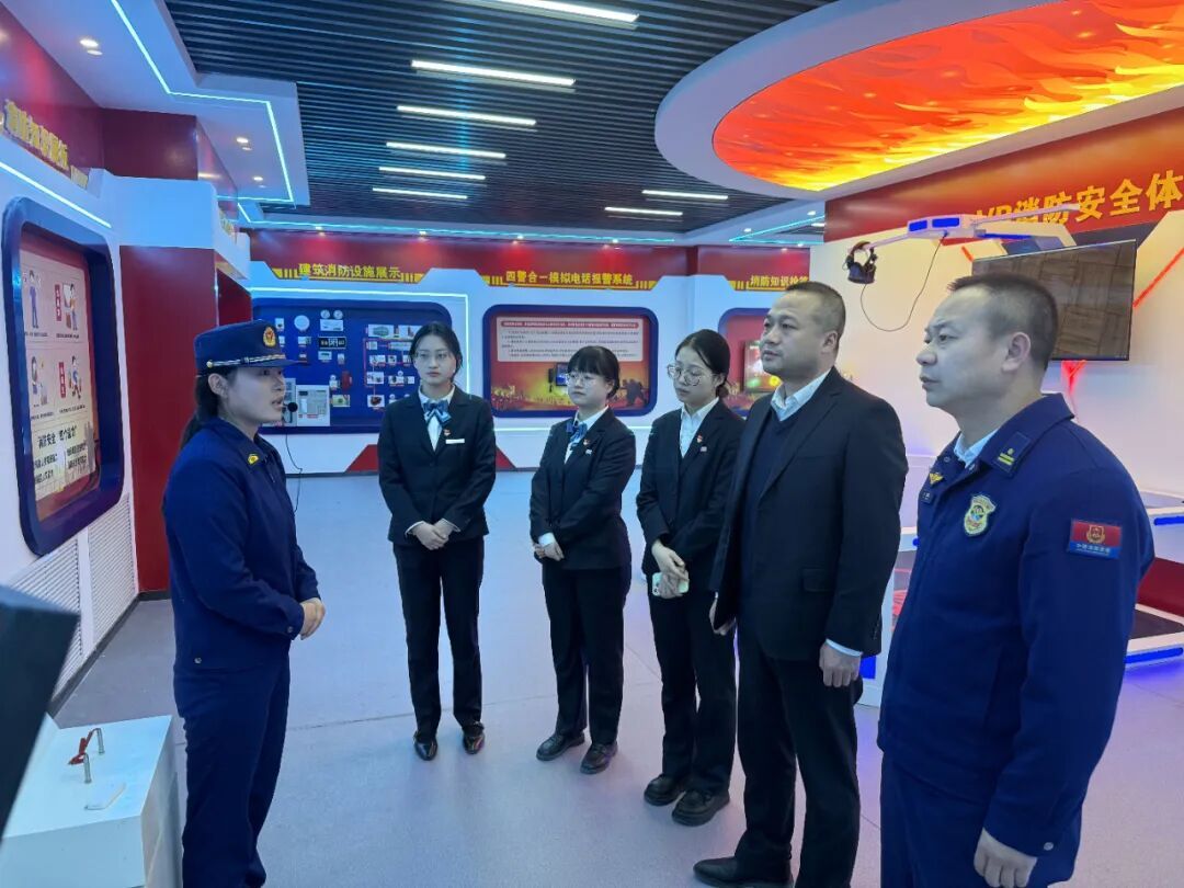 活動中,全體人員面向黨旗莊嚴列隊、高舉右拳,重溫入黨誓詞,鏗鏘有力的誓言回蕩營區(qū),進一步堅定了黨員干部不忘初心、忠誠履職的政治信念。隨后,工商銀行全體干部職工實地參觀了大隊營區(qū)建設,近距離觀摩消防車輛裝備、救援器材展示,沉浸式感受消防救援隊伍的優(yōu)良作風與責任擔當;大家還一同走進消防科普教育基地,通過現(xiàn)場講解、案例分析、互動體驗等形式,系統(tǒng)學習火災預防、初期撲救、逃生自救等消防安全知識,并結合銀行辦公與營業(yè)場所特點,針對性講解電器火災防范、滅火器規(guī)范使用等實操技能,切實提升了銀行工作人員的消防安全意識和應急處置能力。