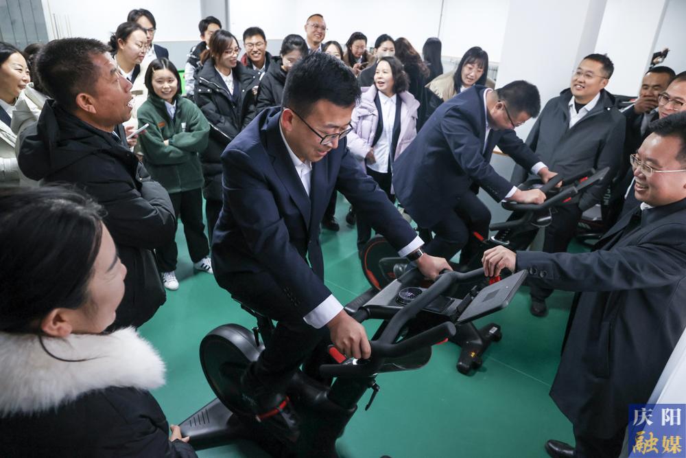 “凝心鑄魂”動感單車接力賽比賽現(xiàn)場。