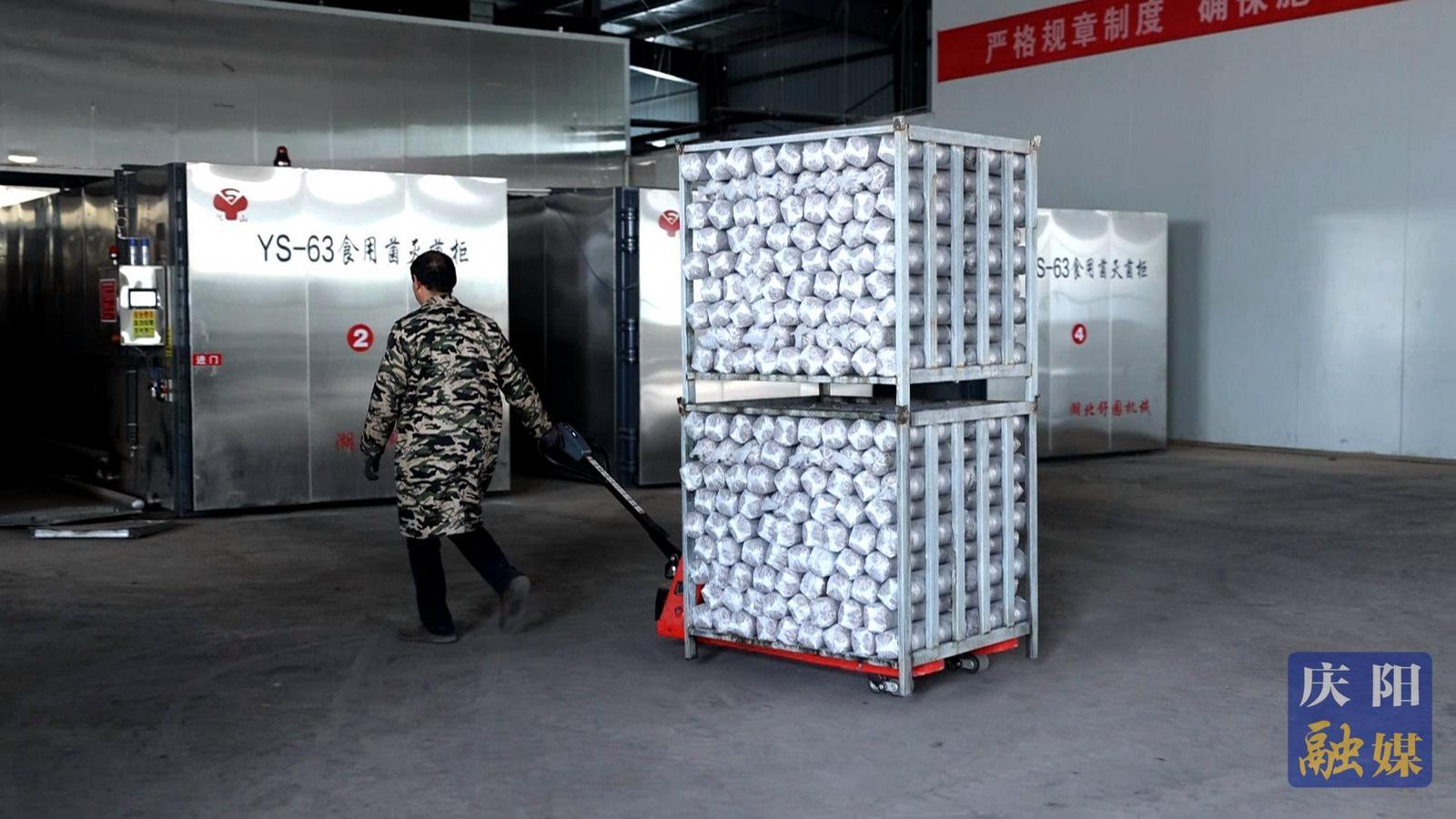 在華池縣閩輝農(nóng)業(yè)科技有限公司的菌棒生產(chǎn)車間內(nèi),機(jī)器轟鳴作響,工人們正有條不紊地進(jìn)行菌棒裝袋、分揀等作業(yè)。