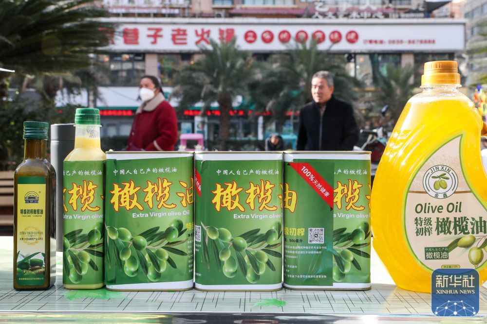 ↑ 這是12月14日在隴南市武都區(qū)“冬至大集”攤位上拍攝的橄欖油。