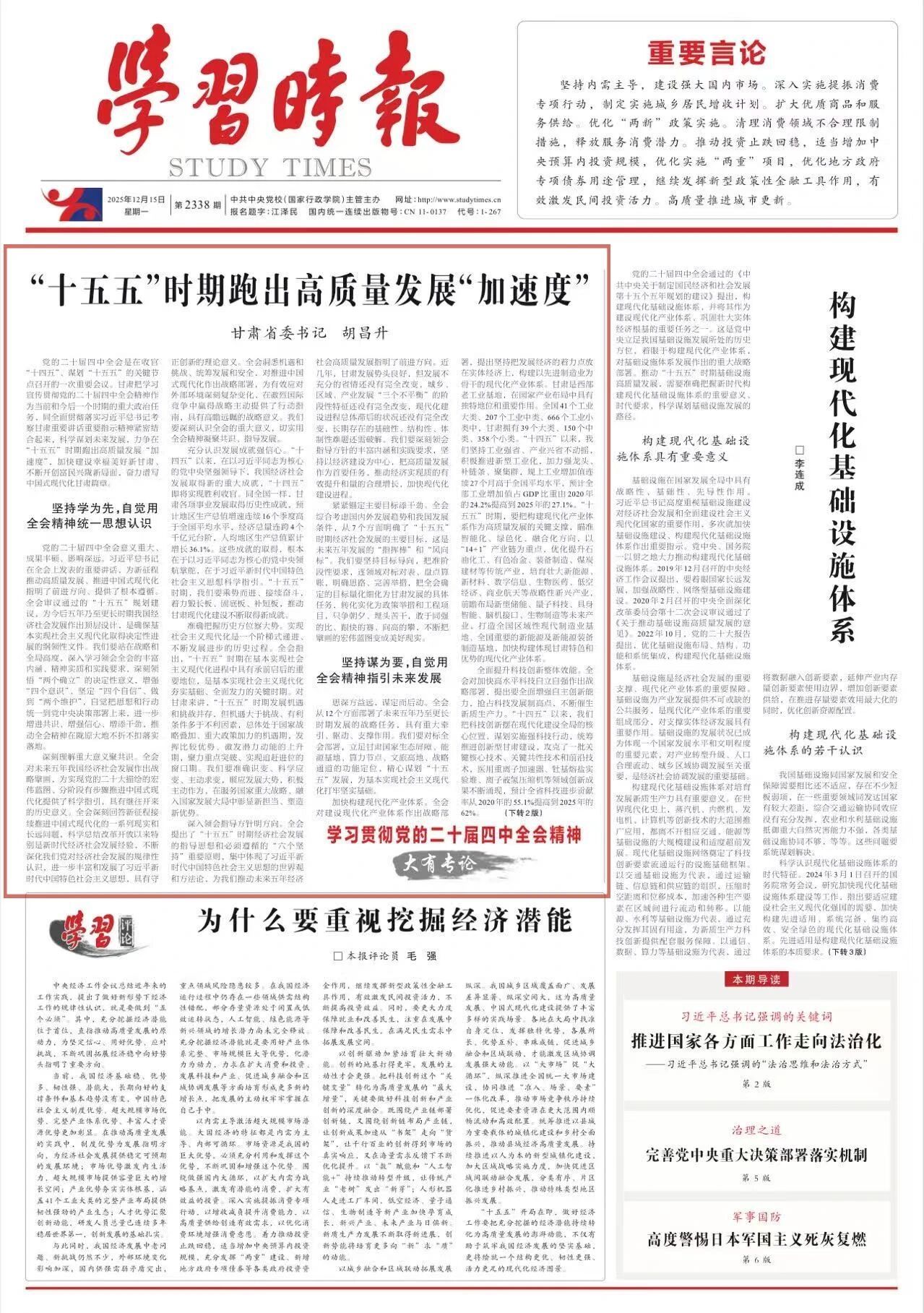 黨的二十屆四中全會是在收官“十四五”、謀劃“十五五”的關鍵節(jié)點召開的一次重要會議。甘肅把學習宣傳貫徹黨的二十屆四中全會精神作為當前和今后一個時期的重大政治任務,同全面貫徹落實習近平總書記考察甘肅重要講話重要指示精神緊密結合起來,科學謀劃未來發(fā)展,力爭在“十五五”時期跑出高質量發(fā)展“加速度”,加快建設幸福美好新甘肅、不斷開創(chuàng)富民興隴新局面,奮力譜寫中國式現(xiàn)代化甘肅篇章。