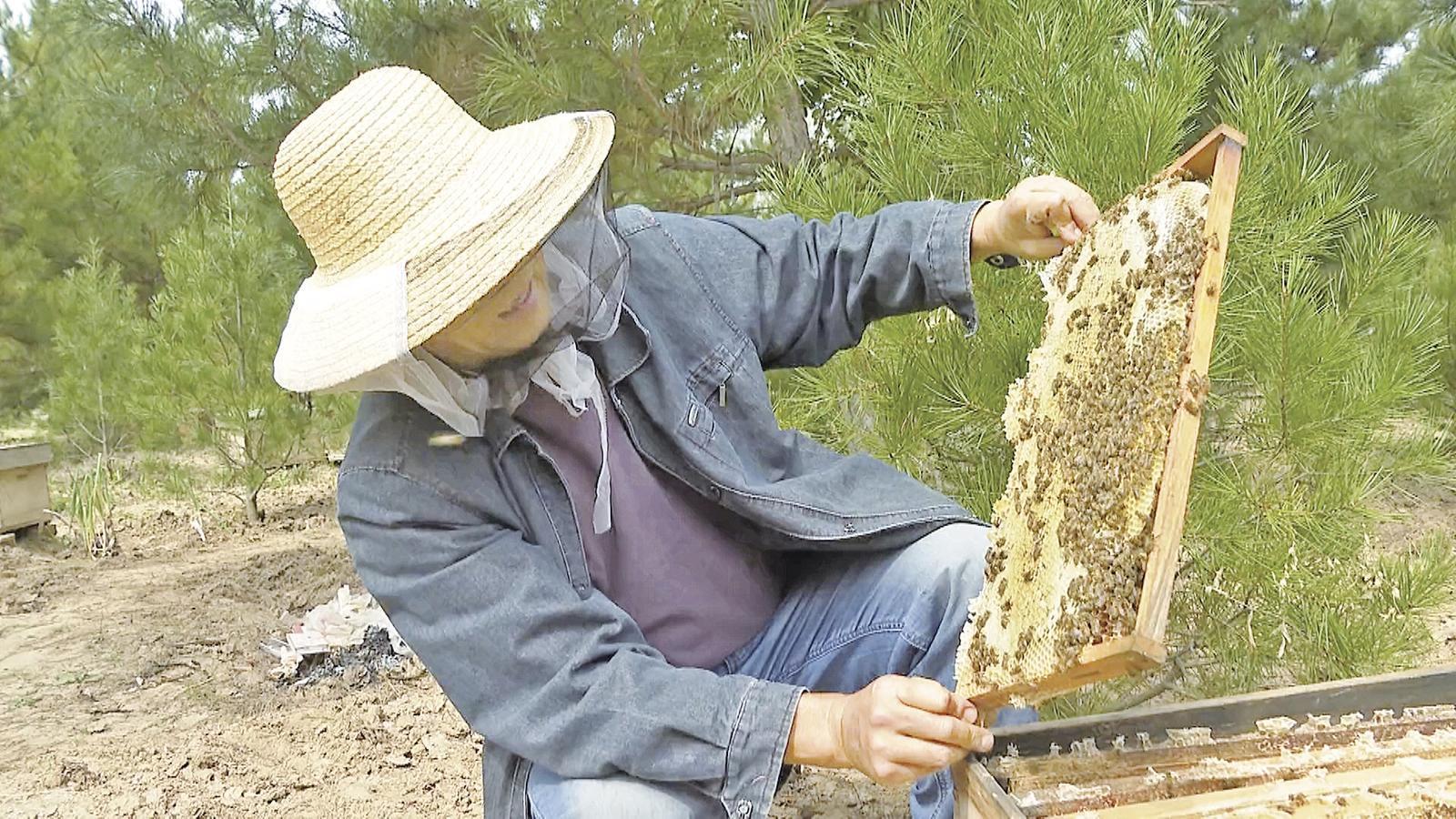 九峴鄉(xiāng)中蜂養(yǎng)殖戶查看蜜蜂越冬情況。
