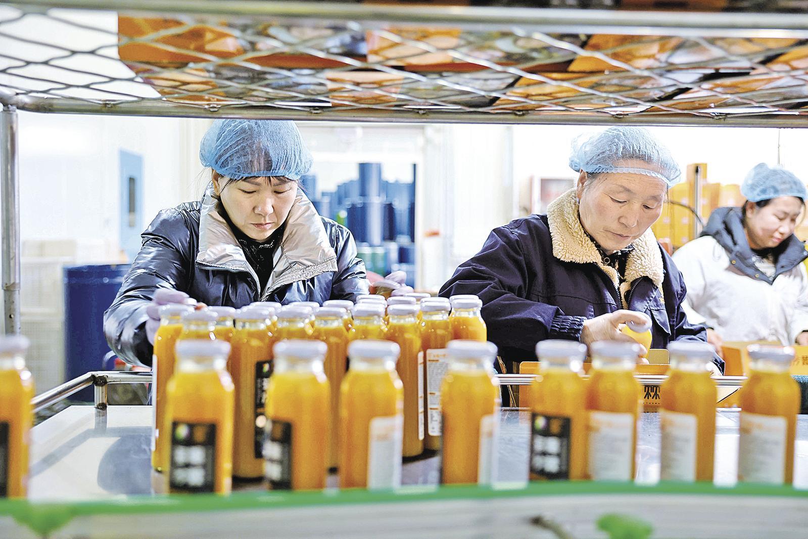 華池縣甘農(nóng)生物科技有限公司工人在包裝沙棘飲料。 通訊員 雷彩利 攝
