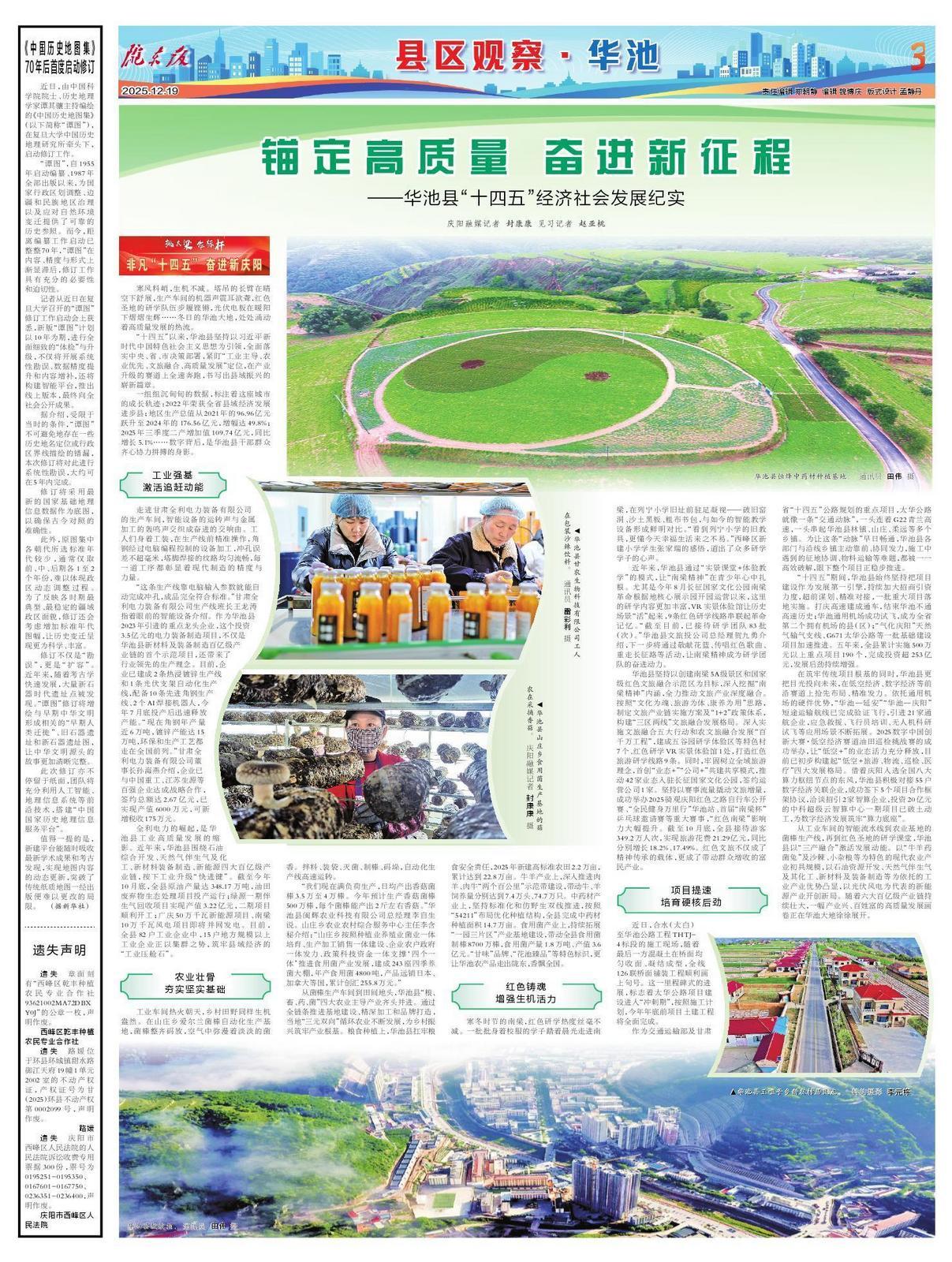 “十四五”以來(lái),華池縣堅(jiān)持以習(xí)近平新時(shí)代中國(guó)特色社會(huì)主義思想為引領(lǐng),全面落實(shí)中央、省、市決策部署,緊盯“工業(yè)主導(dǎo)、農(nóng)業(yè)優(yōu)先、文旅融合、高質(zhì)量發(fā)展”定位,在產(chǎn)業(yè)升級(jí)的賽道上全速奔跑,書寫出縣域振興的嶄新篇章。