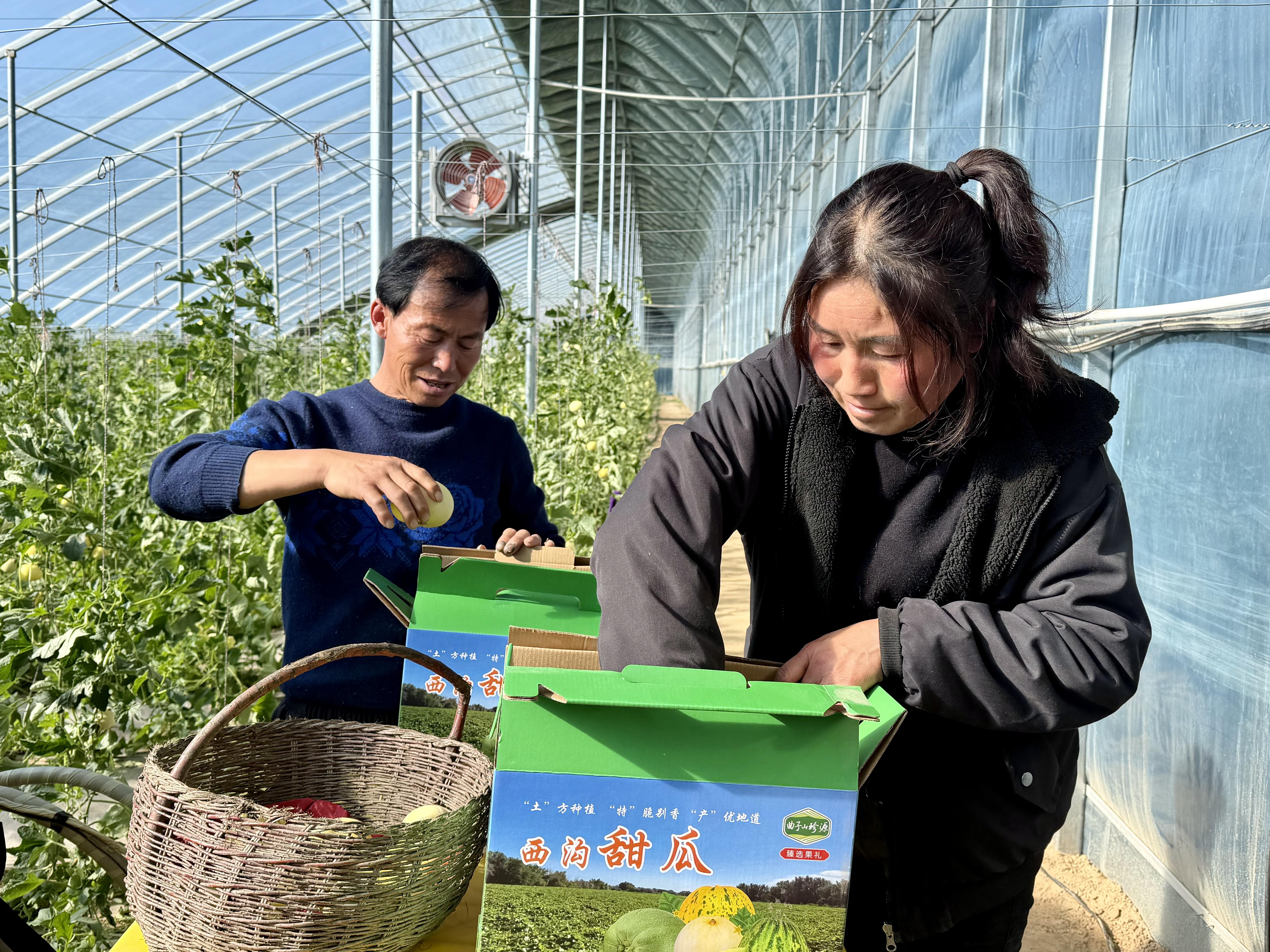 “室外零下十幾度,棚里白天能穩(wěn)定在33℃,夜間也能保持15℃左右,正好契合甜瓜生長的適宜溫度。”劉軍軍一邊將采摘好的甜瓜裝入印有“西溝甜瓜”的包裝盒,一邊介紹。據(jù)悉,他承包兩間日光溫室今年5月由西溝村統(tǒng)一規(guī)劃建設(shè),7月完成甜瓜苗移栽,借助智能溫控系統(tǒng)精準(zhǔn)調(diào)控晝夜溫差,實(shí)現(xiàn)了甜瓜一年兩熟的反季種植。種植過程中采用純羊糞發(fā)酵后科學(xué)配比施肥,定期巡查清理病葉、物理防治蟲害,確保甜瓜品質(zhì)天然清甜。