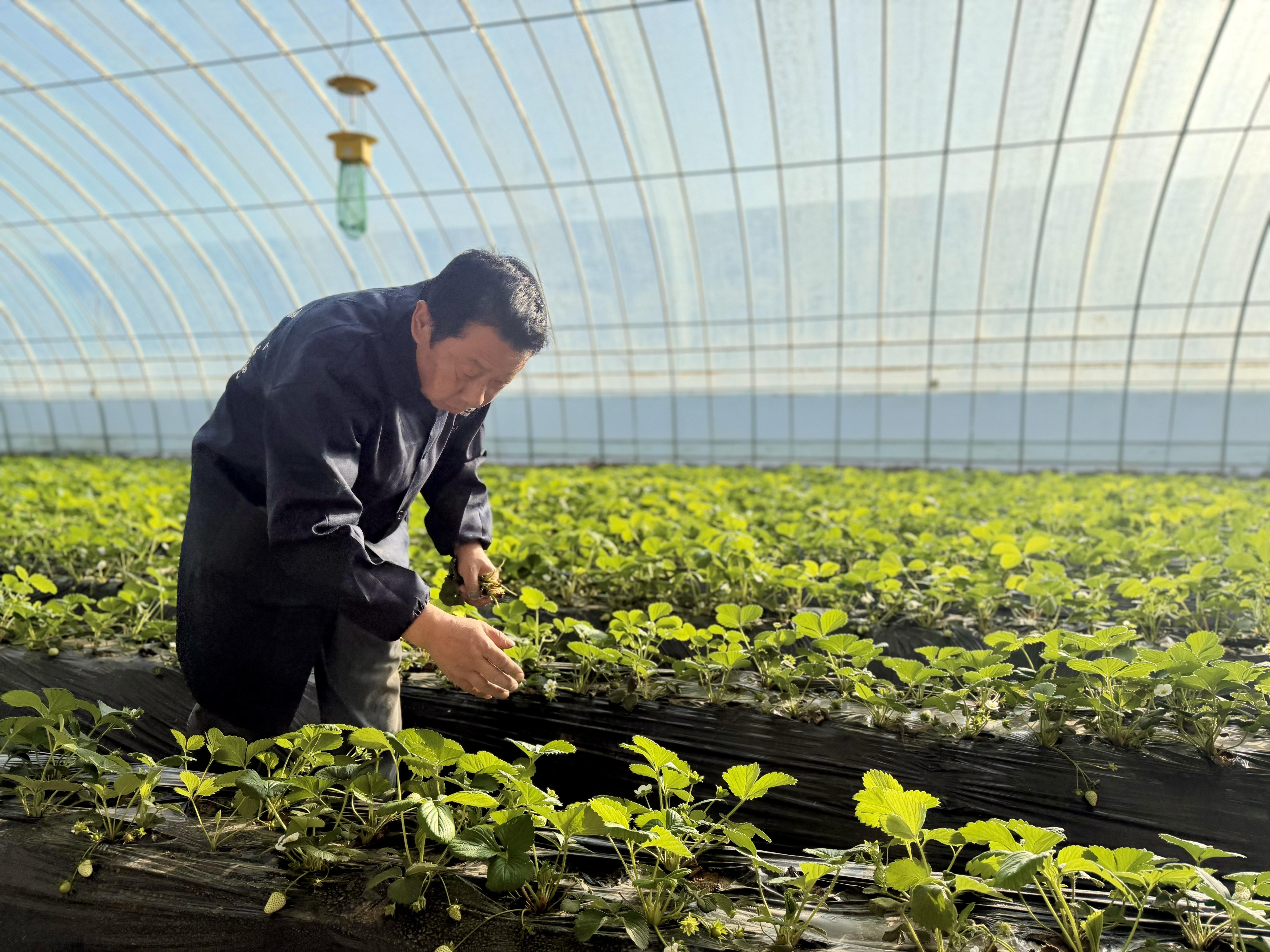據(jù)張帆介紹,溫室頂部的太陽能裝置可以源源不斷地輸送熱量,兩側(cè)的水幕墻在智能控制系統(tǒng)調(diào)控下自動保濕降溫,地面鋪設(shè)的小雨滴灌系統(tǒng)可以實(shí)現(xiàn)精準(zhǔn)滴灌?!拔覀兺ㄟ^滴灌系統(tǒng)精準(zhǔn)供水,既節(jié)水又能保證養(yǎng)分均衡。”張帆指著監(jiān)控平臺說,“溫室里的溫度、濕度、土壤墑情都能實(shí)時監(jiān)測,夜間通過水幕墻和管道控溫系統(tǒng)進(jìn)行保溫,不用人工值守就能保障草莓生長?!闭劶叭粘9芾?,張帆坦言:“現(xiàn)在主要就是清理廢葉、監(jiān)測數(shù)據(jù),智能系統(tǒng)幫我們省了不少力,種出來的草莓口感和品質(zhì)都有保障?!?/p>