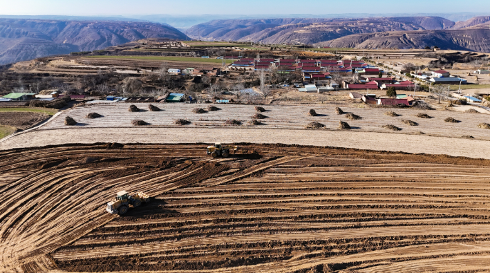 連日來,環(huán)縣各鄉(xiāng)鎮(zhèn)高標(biāo)準(zhǔn)農(nóng)田項(xiàng)目建設(shè)現(xiàn)場,挖掘機(jī)、推土機(jī)正搶抓工期,進(jìn)行挖溝開槽、平整田地等作業(yè),放眼望去,昔日零散地塊逐步被整理成連片平整的田塊,一派熱火朝天的施工景象。
