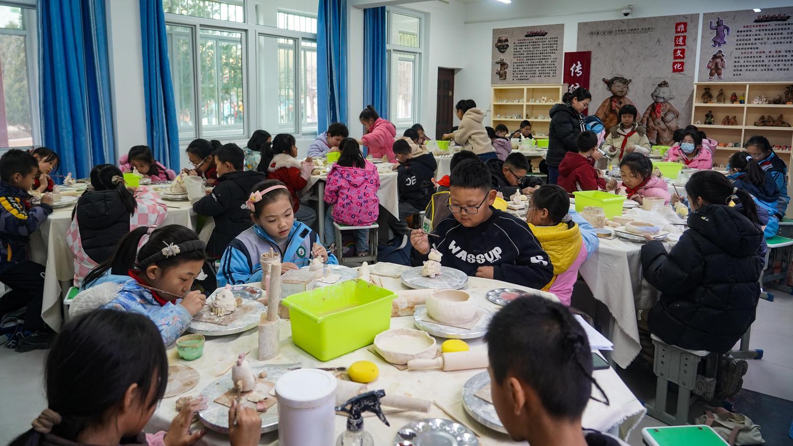除了道情演唱和皮影雕刻,環(huán)縣南關(guān)小學(xué)還引入了泥塑等非遺相關(guān)課程?!拔覀兿Mㄟ^親手體驗(yàn),在孩子們心中播下熱愛與傳承傳統(tǒng)文化的種子。”南關(guān)小學(xué)教務(wù)主任趙亮介紹,學(xué)校聘請(qǐng)非遺傳承人定期到校指導(dǎo),確保皮影演唱、雕刻等課程的“原汁原味”。這些課程不僅豐富了學(xué)生們的課后生活,更讓非遺文化以可感、可學(xué)、可玩的方式走進(jìn)青少年心中,讓古老的皮影藝術(shù)真正“活”在校園里。