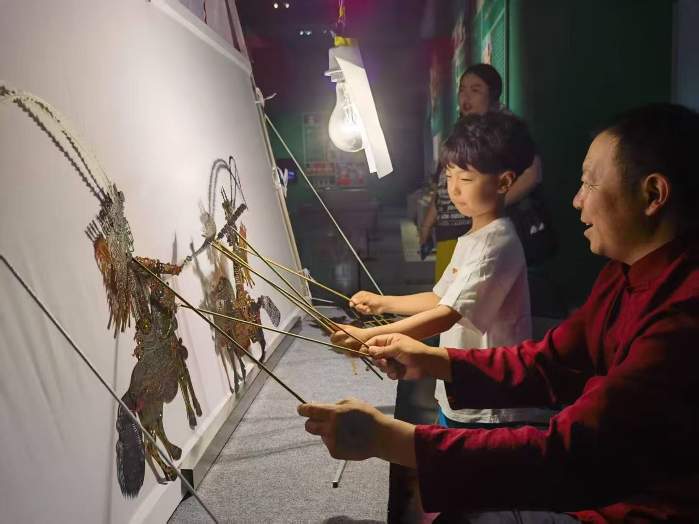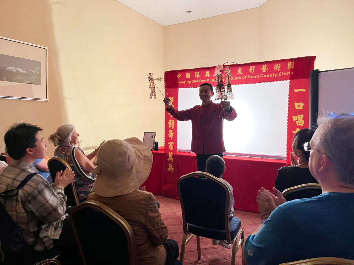 高鐵帶來(lái)的便捷,讓道情皮影的“朋友圈”越擴(kuò)越大。2025年5月,環(huán)縣道情皮影傳承人張志文和皮影班子也通過(guò)便利的交通,前往約旦薩爾特市的“茶和天下——甘肅文旅推廣”活動(dòng)現(xiàn)場(chǎng),環(huán)縣道情皮影首次亮相中東。當(dāng)外國(guó)觀眾親手挑起纖繩,看著皮影人兒在幕布上跳躍時(shí),驚嘆聲此起彼伏。同年,許明堂和伙伴們遠(yuǎn)赴美國(guó)華盛頓,在中國(guó)大使館“世界使館開(kāi)放日”活動(dòng)中,超萬(wàn)名美國(guó)民眾被這門(mén)東方絕技吸引,排隊(duì)體驗(yàn)皮影雕刻與表演。如今,環(huán)縣道情皮影的光影,已在20余個(gè)國(guó)家的舞臺(tái)上躍動(dòng),成為中外文化交流的亮麗名片。