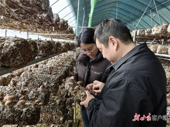 慶陽市農(nóng)科院技術(shù)人員在合水縣太白鎮(zhèn)新禾菌業(yè)公司開展香菇新品種生長調(diào)查。
