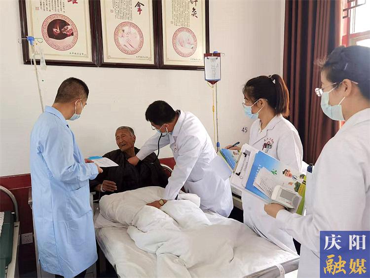 鎮(zhèn)原縣太平鎮(zhèn)衛(wèi)生院醫(yī)務人員給住院病人查體。