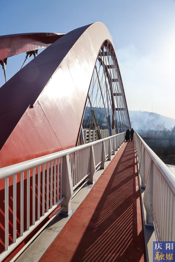 作為項目關(guān)鍵控制性工程,長慶橋全長310.6米,主橋?qū)?9米,引橋?qū)?5米,是甘肅省首座提籃式鋼箱網(wǎng)狀吊桿下承式系桿拱橋,也是同類型橋梁中跨徑最大的一座。建設過程中,團隊攻克系梁風撐銜接、成橋索力確定等關(guān)鍵技術(shù)挑戰(zhàn),橋梁以148米主跨一跨過河,既解決涇河行洪難題,又以“展翅蝴蝶”般的造型實現(xiàn)實用與顏值兼?zhèn)洹?/p>