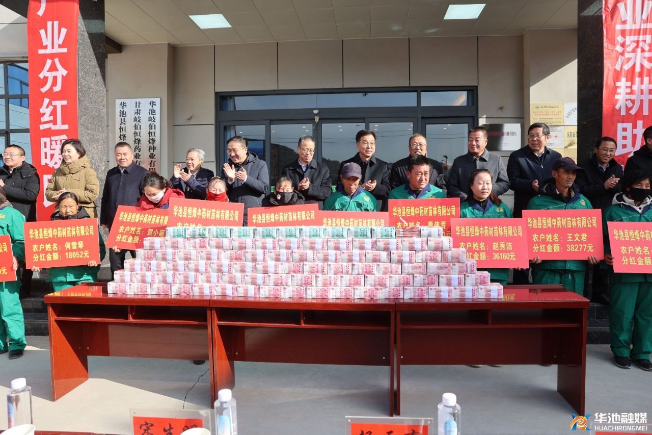 “十年來,恒烽公司帶動全縣30個合作社種植中藥材8.4萬畝,帶動12600戶群眾種植9.15萬畝,公司自有種植面積2.45萬畝,全縣中藥材種植總面積已達(dá)20.02萬畝?!币ξ闹墙榻B,此次804.5萬元分紅,正是通過土地入股、勞務(wù)入股、機(jī)械入股的模式發(fā)放,惠及1260戶農(nóng)戶。