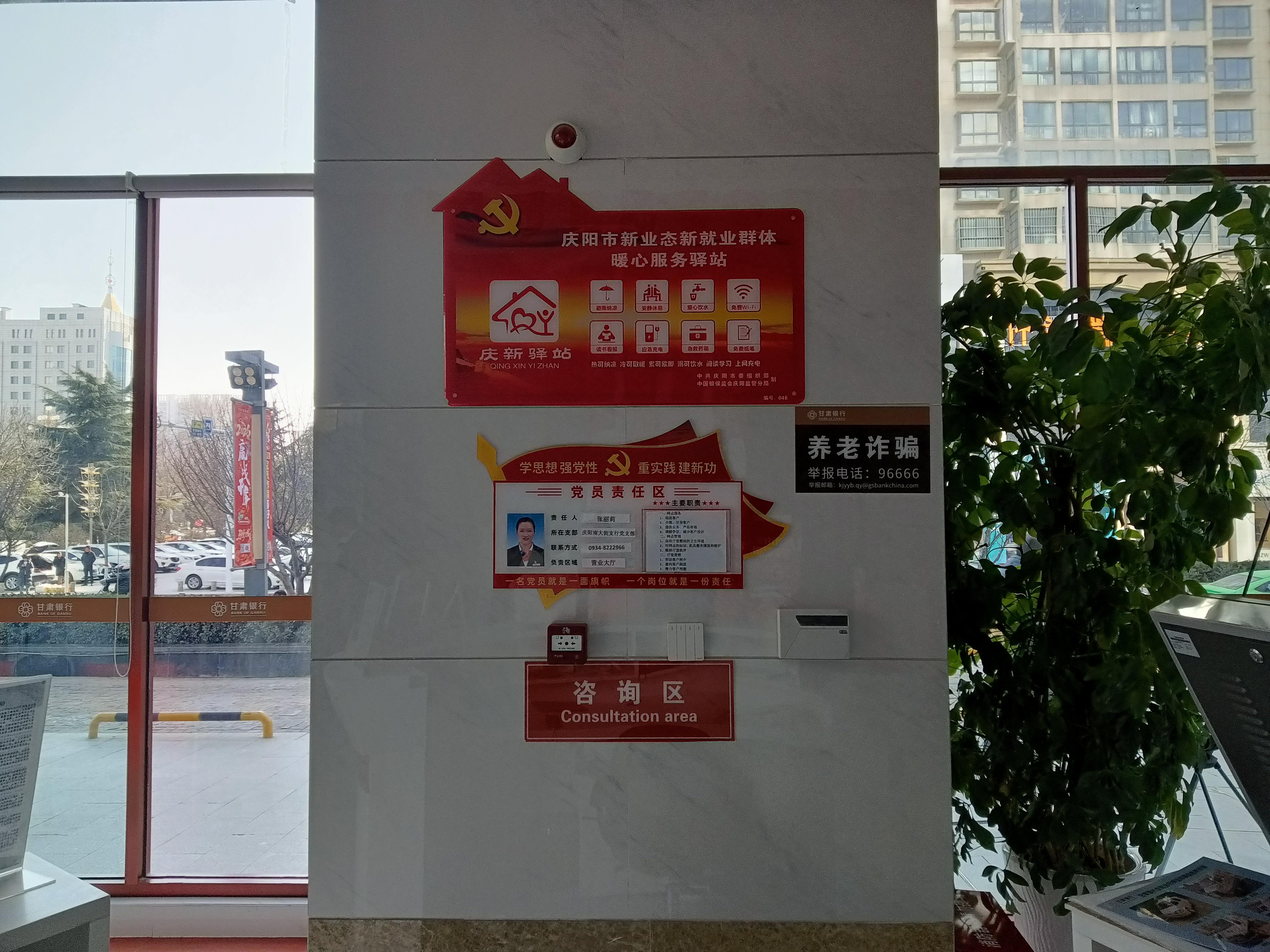 慶陽市各大銀行普遍設(shè)立新就業(yè)群眾服務(wù)驛站。