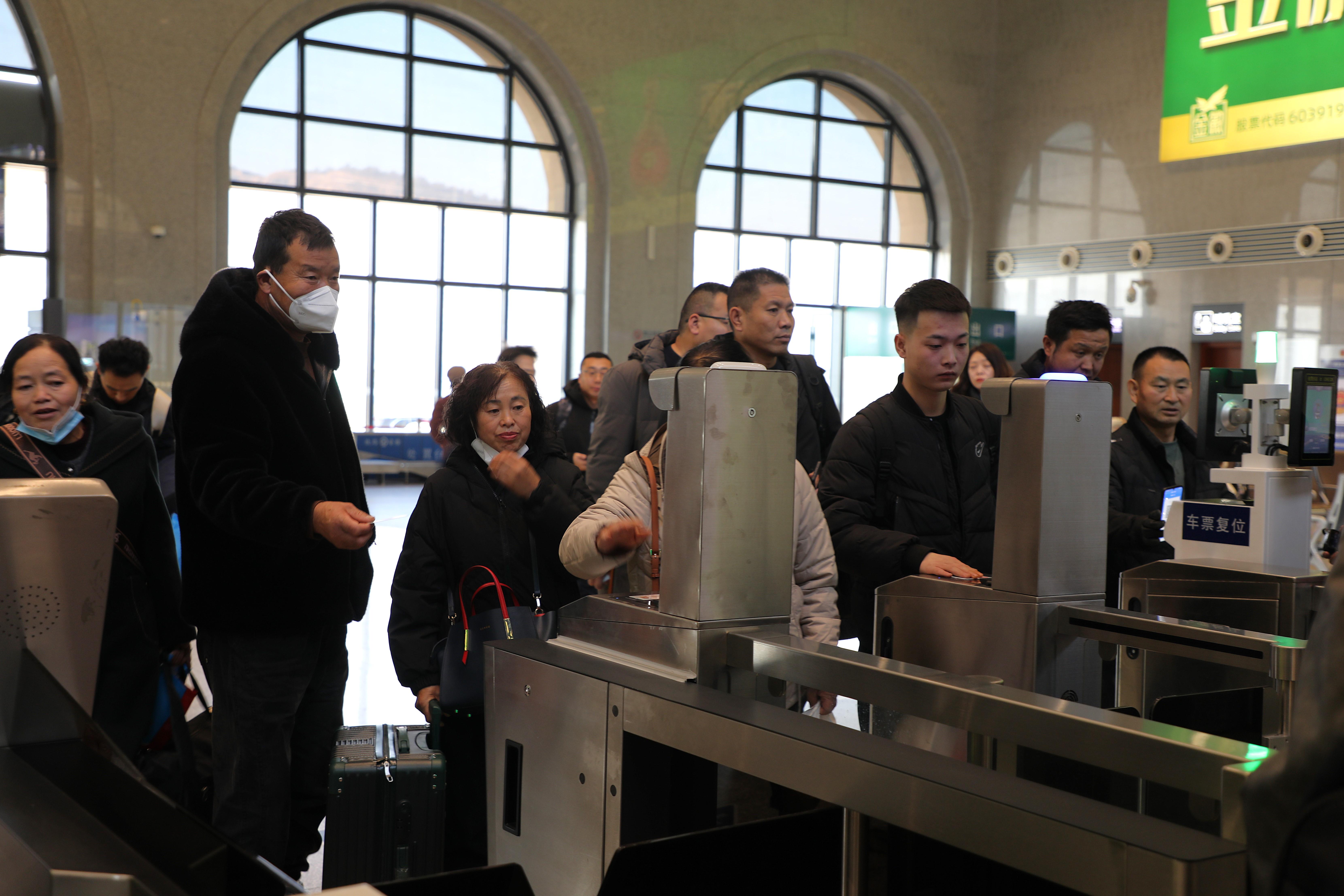 “您好,請摘下口罩看攝像頭,刷身份證,也可用手機刷電子乘車二維碼……”12月26日,黃土塬上寒風凜冽,環(huán)縣高鐵站里卻暖意融融、人流如織。智能檢票口前,乘客們在工作人員引導下有序檢票入站,一派繁忙景象。