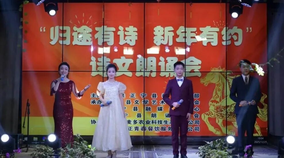 詩意歸途誦經(jīng)典,文化傳承潤人心。正寧縣“歸途有詩新年有約”詩文朗誦會(huì)精彩上演。經(jīng)典誦讀、器樂演奏與情景演繹,為觀眾打造沉浸式文化體驗(yàn)?!对婍嵥募尽芬灾赡弁暪蠢账募玖鬓D(zhuǎn),《滿江紅》則以鏗鏘語調(diào)重現(xiàn)英雄氣概;創(chuàng)新節(jié)目《春江花月夜》通過“朗誦+古箏+舞蹈”的形式,將古典意境具象化,成為全場焦點(diǎn)?!痘丶疫^年》以生活化演繹還原團(tuán)圓場景,一句“回家,回家過年”讓現(xiàn)場溫情氛圍達(dá)到頂峰。