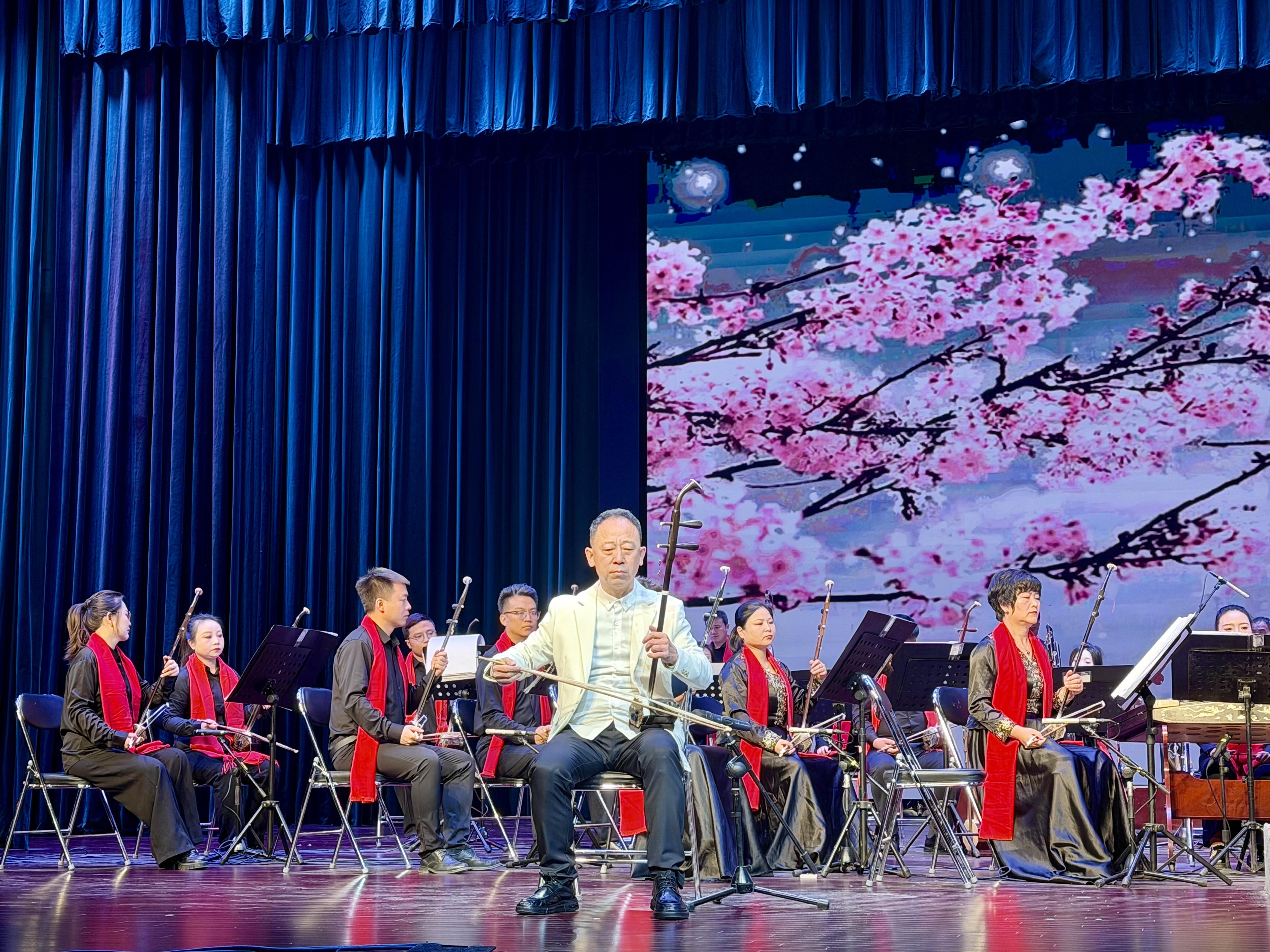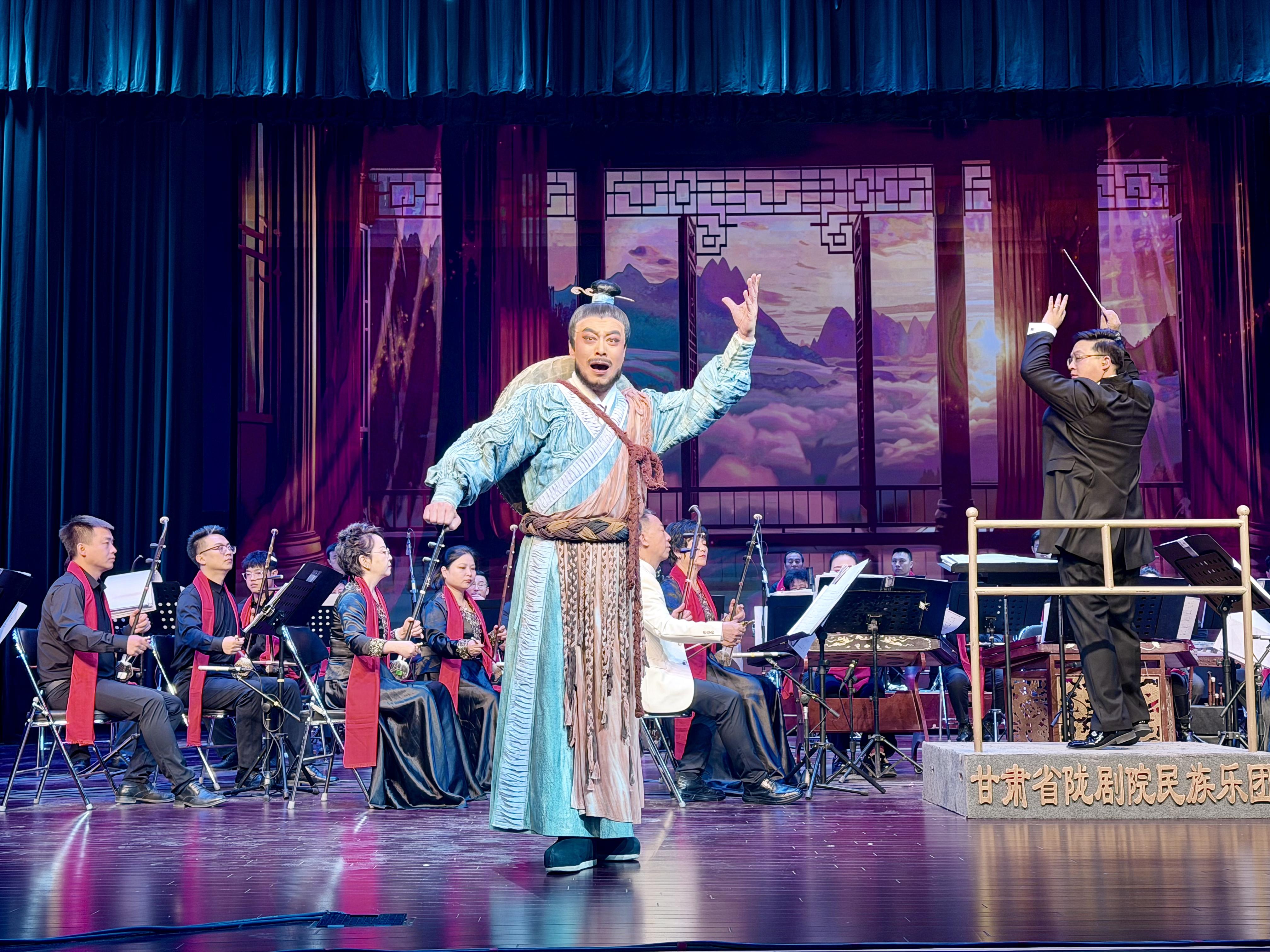 隨后,《西部民歌組曲》《假婿乘龍》選段、二胡協(xié)奏《紅梅隨想曲》等節(jié)目輪番登場,或清新雅致,或激昂澎湃,或深情雋永,隴劇的婉轉(zhuǎn)、民樂的厚重在此交織碰撞?!恫磺募沽骸贰洞蠛?xùn)|流》等隴劇選段,以鮮明的地域特色和深刻的情感內(nèi)涵,贏得陣陣掌聲。