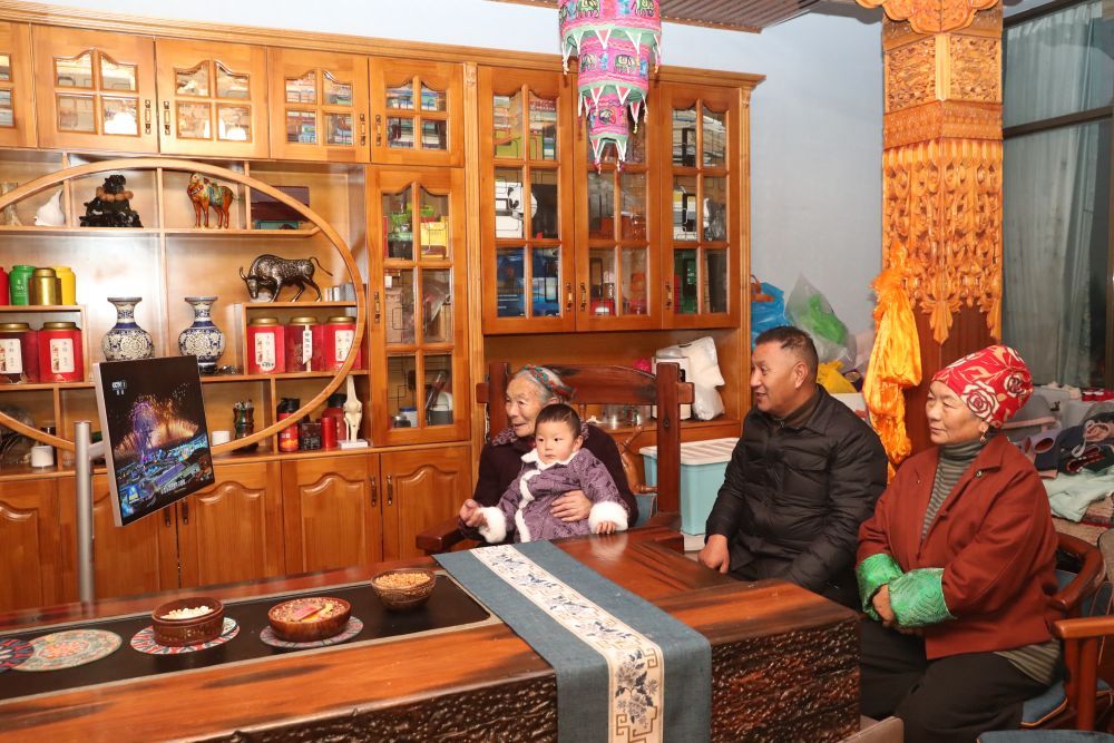 青藏高原南部,山南市的一戶藏族民居里,電視上正放著習近平總書記發(fā)表新年賀詞的視頻直播。年近九旬的藏族老人陳明英拿著遙控器想把聲音調得更高些。