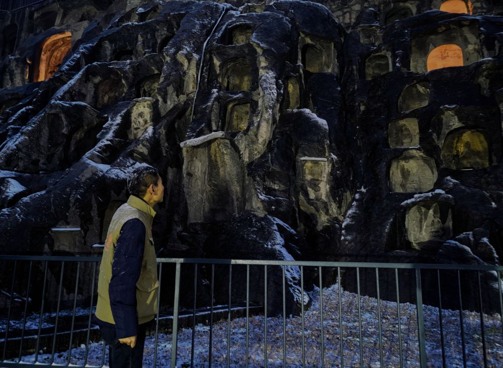 2025年最后一天,龍門石窟研究院石窟保護研究與遺產監(jiān)測中心副主任、研究館員馬朝龍像往常一樣在窟龕間夜巡。自大學畢業(yè)到這里工作以來,這樣的巡查,他已不知走了多少回。