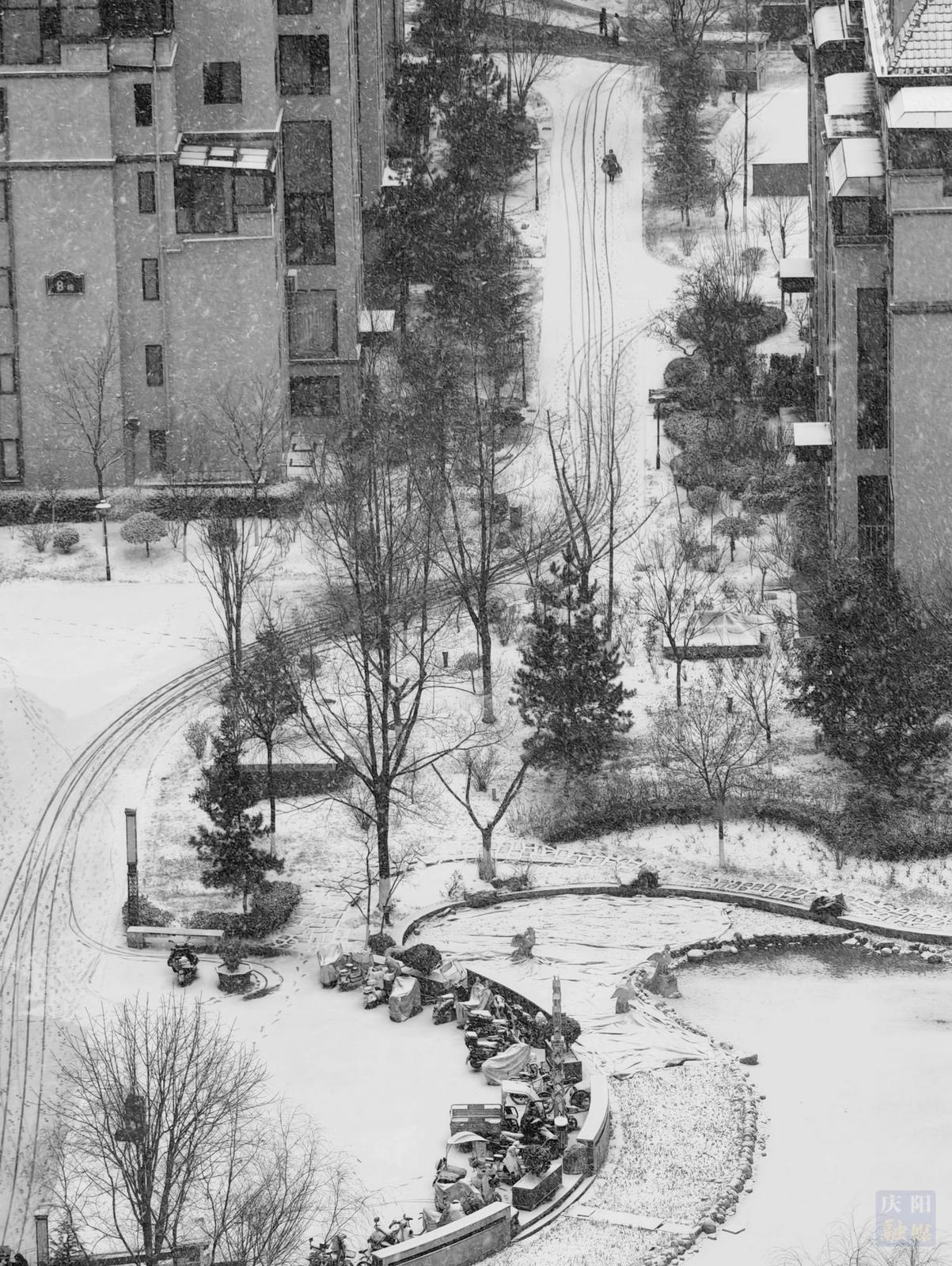 《小區(qū)雪景》慶陽融媒記者 俄少飛 攝