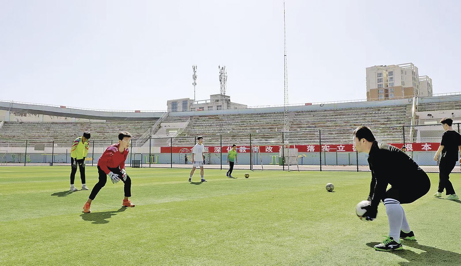 運(yùn)動(dòng)員在環(huán)縣體育場(chǎng)訓(xùn)練。
