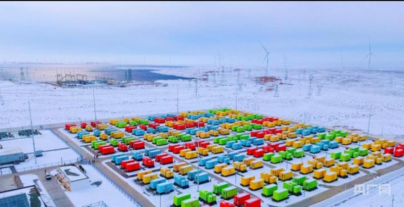 臨澤縣板橋鎮(zhèn)羊臺山下北風正勁,將戈壁灘的雪花吹成魚鱗狀。一座規(guī)模達300兆瓦/1200兆瓦時的獨立共享儲能電站在這里建設(shè)正酣。從空中俯瞰,儲能區(qū)240臺電池倉色彩繽紛,為戈壁灘增添一抹亮色。