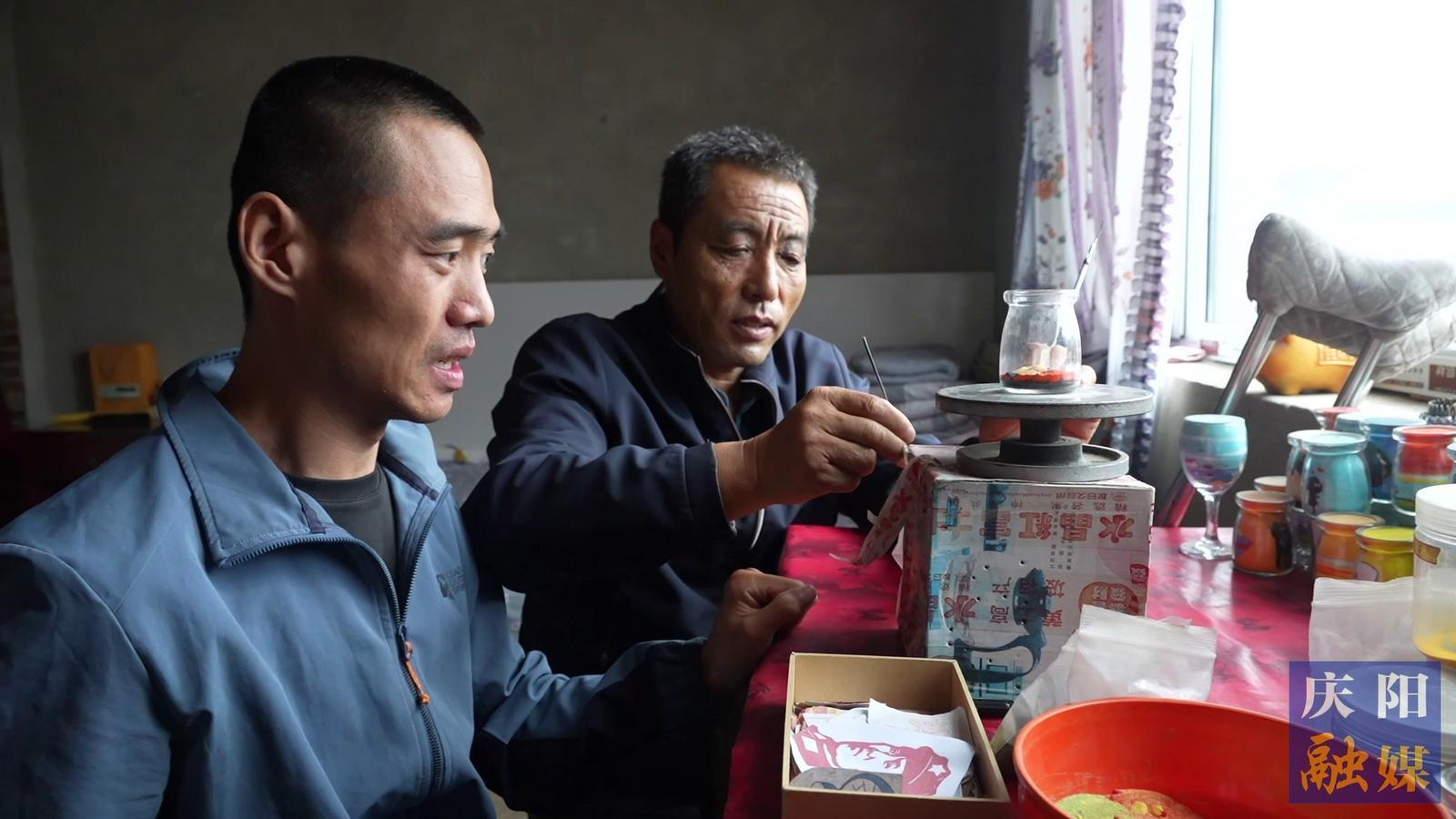 李含林給徒弟李強(qiáng)強(qiáng)傳授沙瓶畫制作技藝敬強(qiáng)強(qiáng)攝