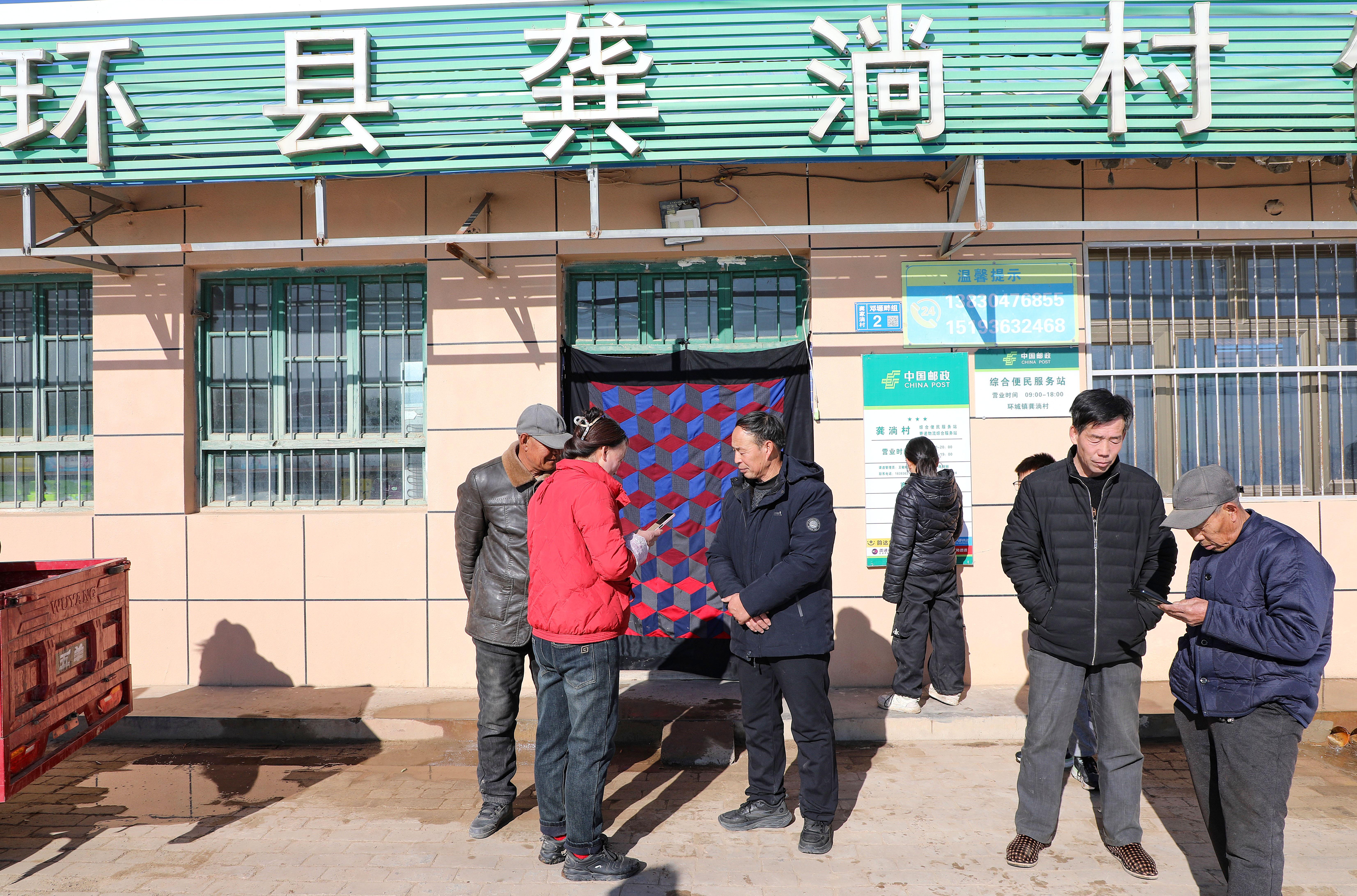 三九寒天,大雪初霽。環(huán)縣環(huán)城鎮(zhèn)龔淌村村民敬寶霞走出家門(mén),不到十分鐘,便在村頭的供銷(xiāo)服務(wù)社取到了網(wǎng)購(gòu)的烤燈。