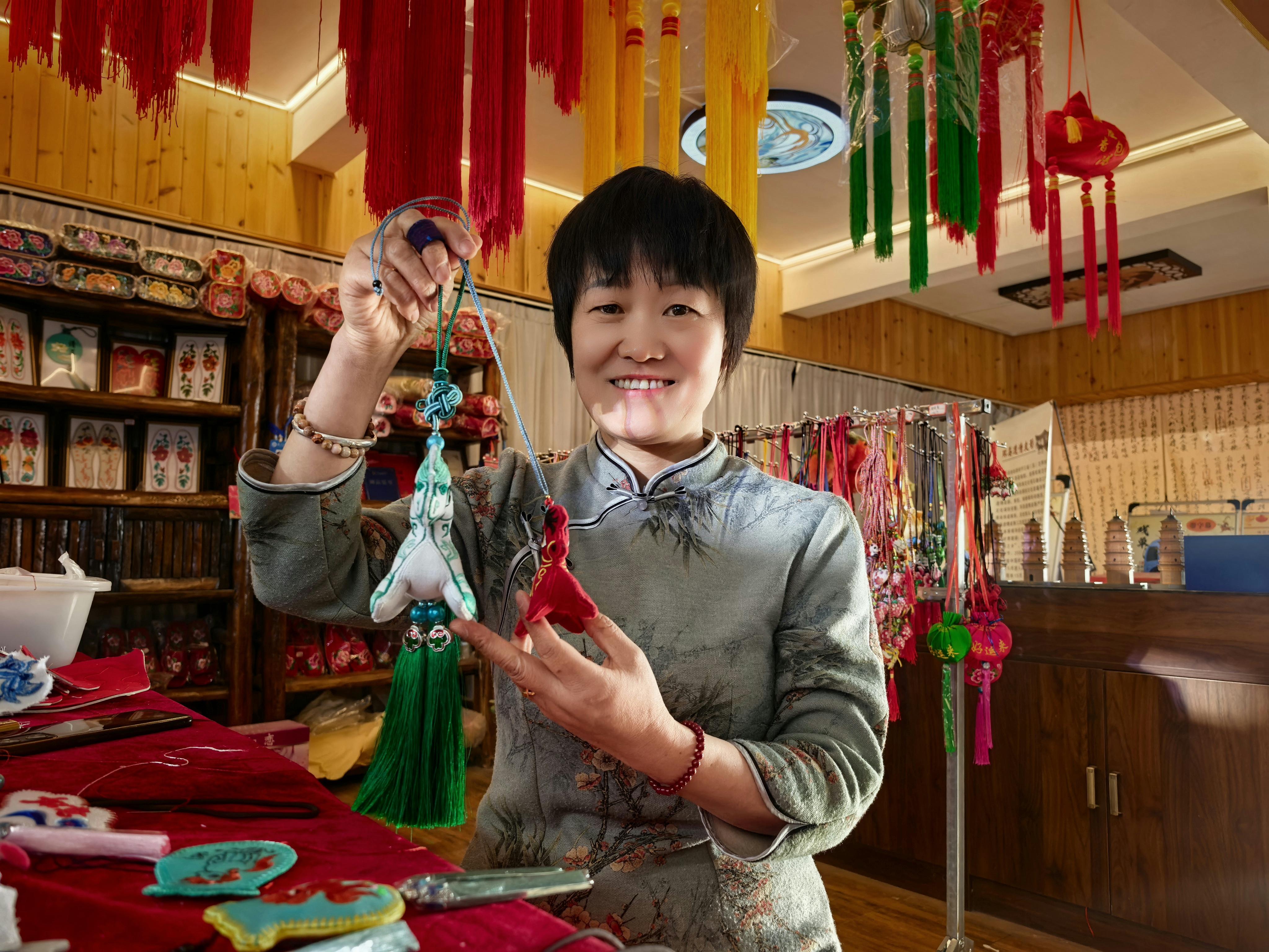 這些刺繡作品最大的創(chuàng)新,在于讓傳統(tǒng)文化走進了日常生活。“馬年到了,我想讓祝福變得可以隨身攜帶。”曹偉偉拿起一個剛完成的香包,細細的絲線在光下泛著溫潤的光澤。在這里,古老文字不再是博物館里的陳列,而是可以觸摸、可以佩戴的溫暖祝福。