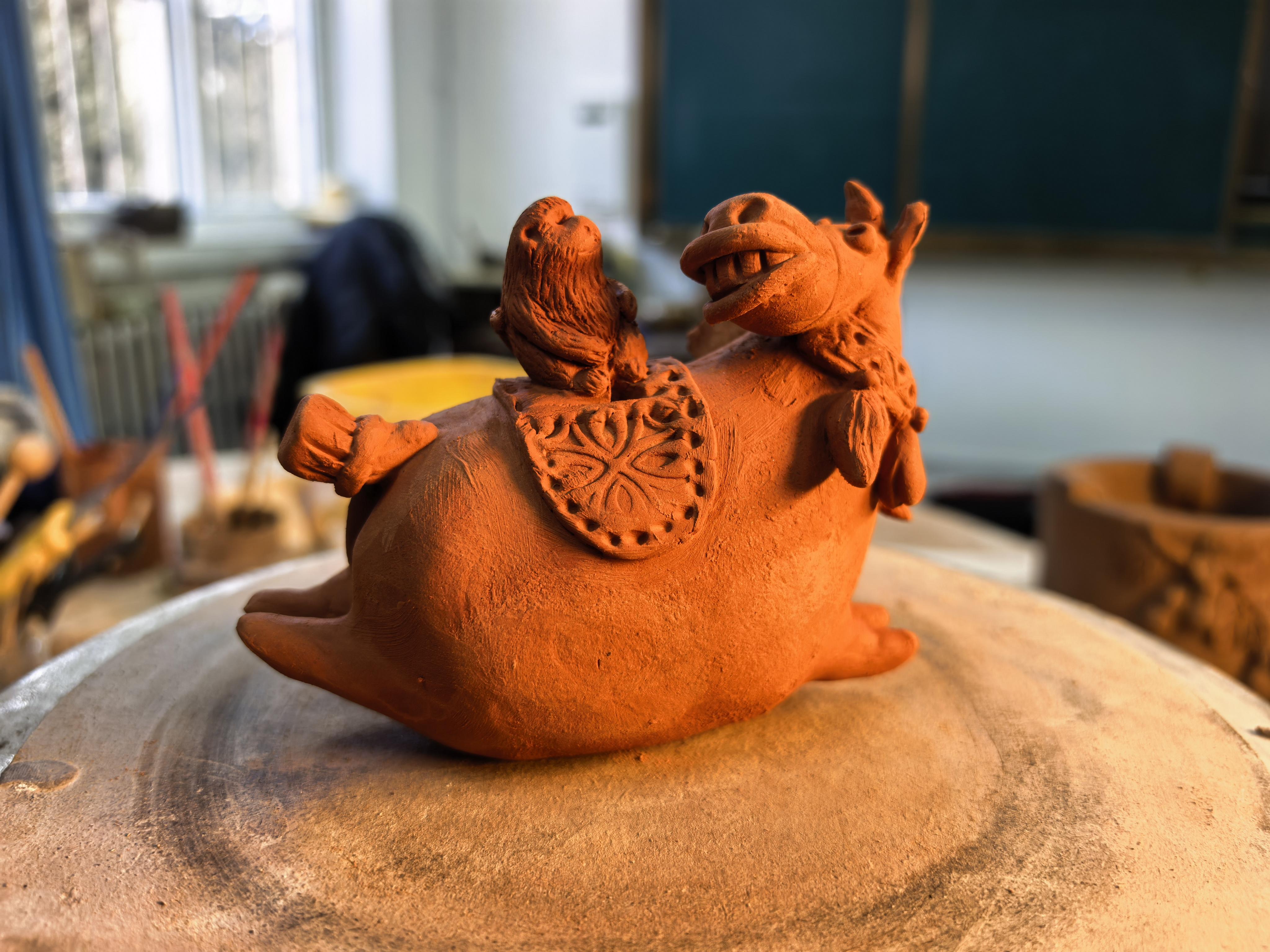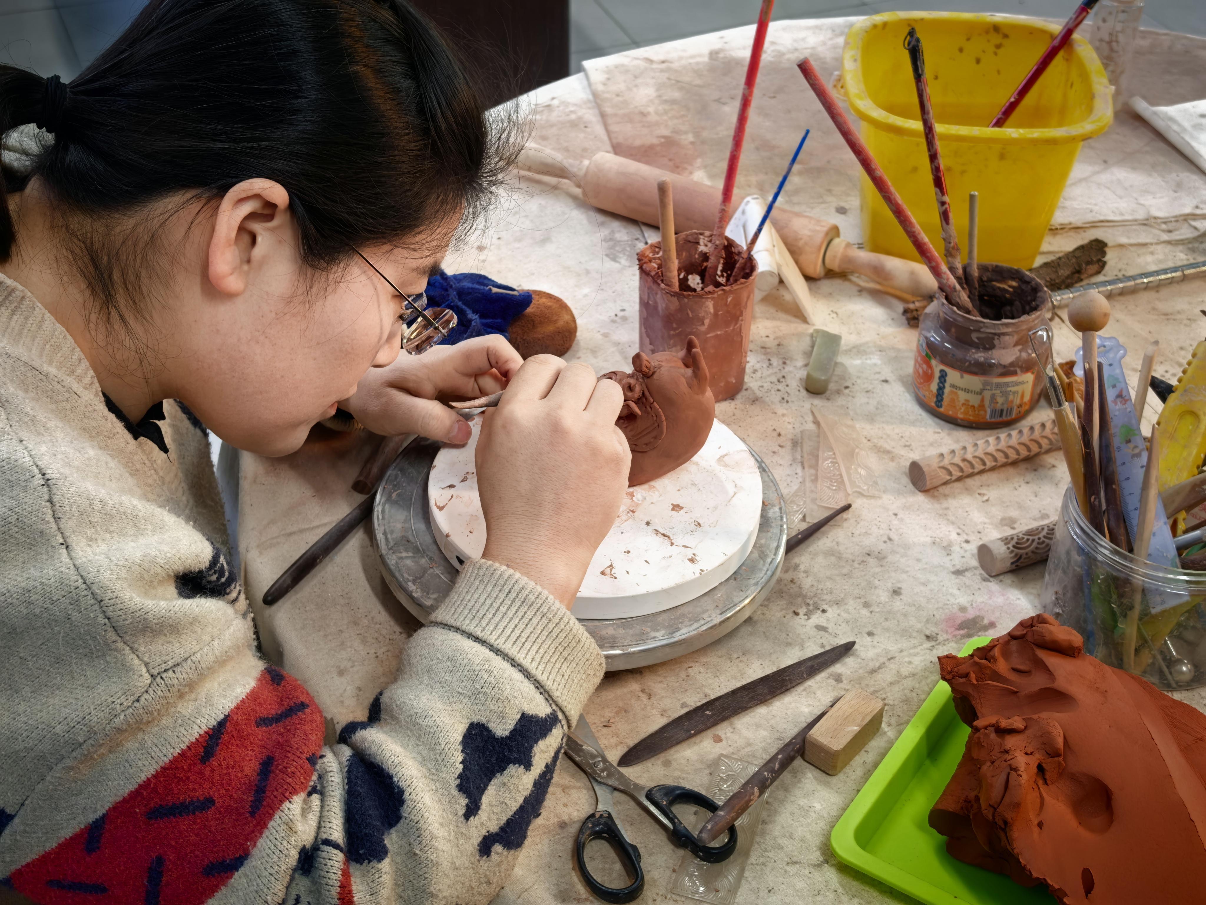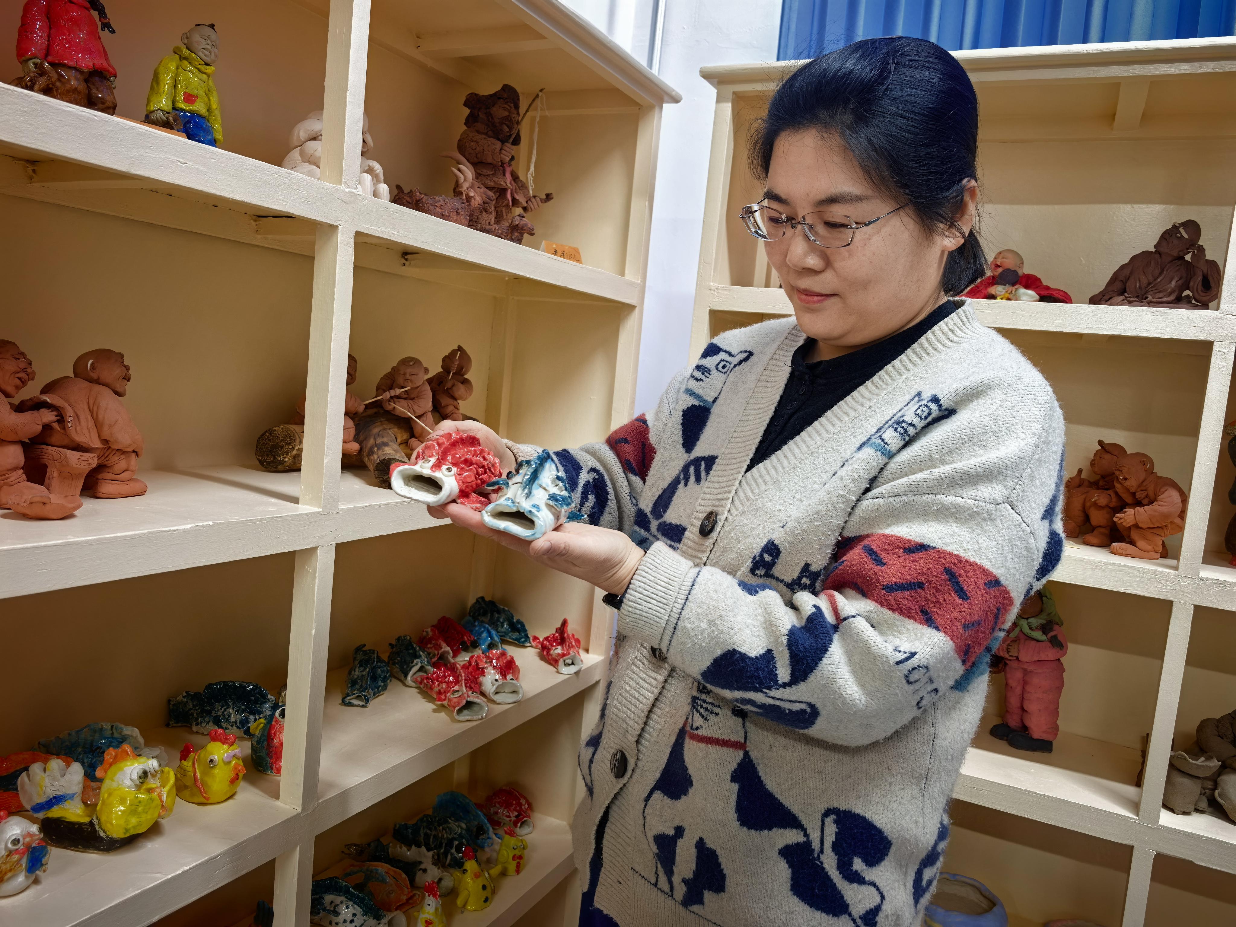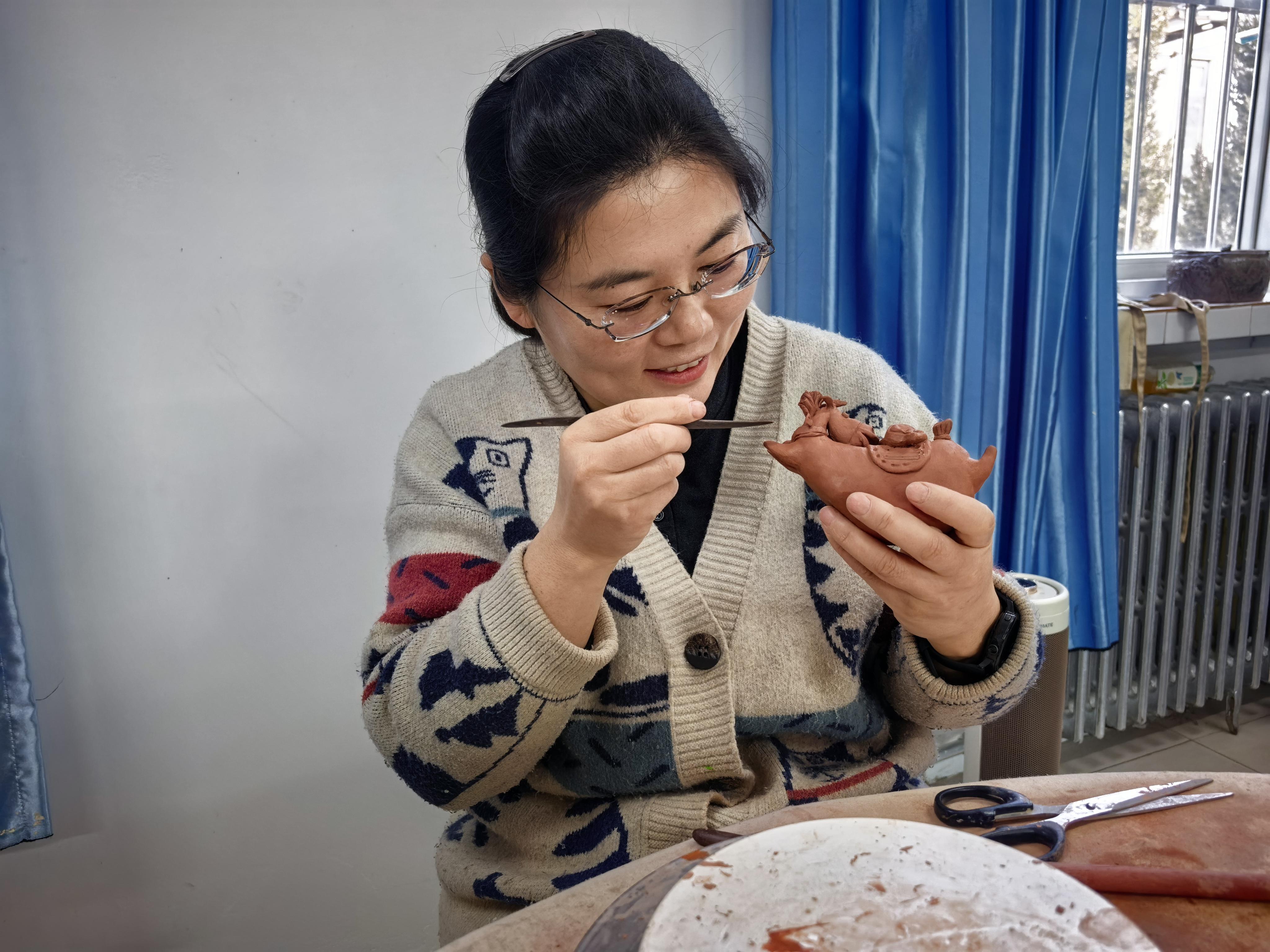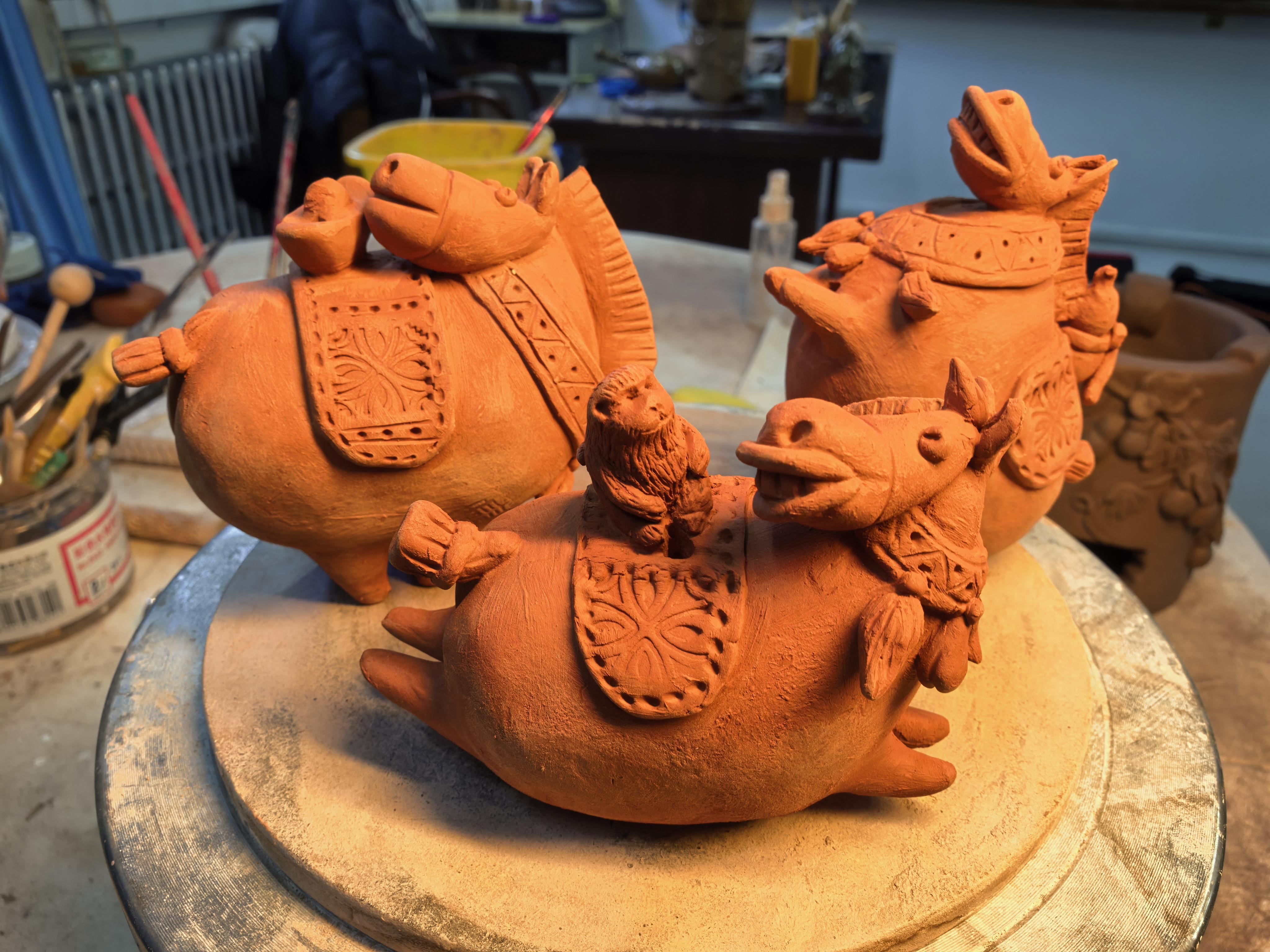 “看,這匹馬的尾巴要翹得再高一點(diǎn),顯得更歡樂?!崩顬t手把手地教著學(xué)生,泥土在她手中仿佛有了生命。教室里笑聲不斷,學(xué)生們?cè)趥鹘y(tǒng)技藝中找到了表達(dá)的樂趣。這些作品不僅保留了傳統(tǒng)泥塑的工藝精髓,更注入了當(dāng)代人的生活情趣。