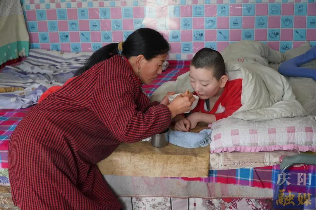 許改燕正在給大女兒喂飯?!?lái)源/慶陽(yáng)融媒記者 路世玲攝