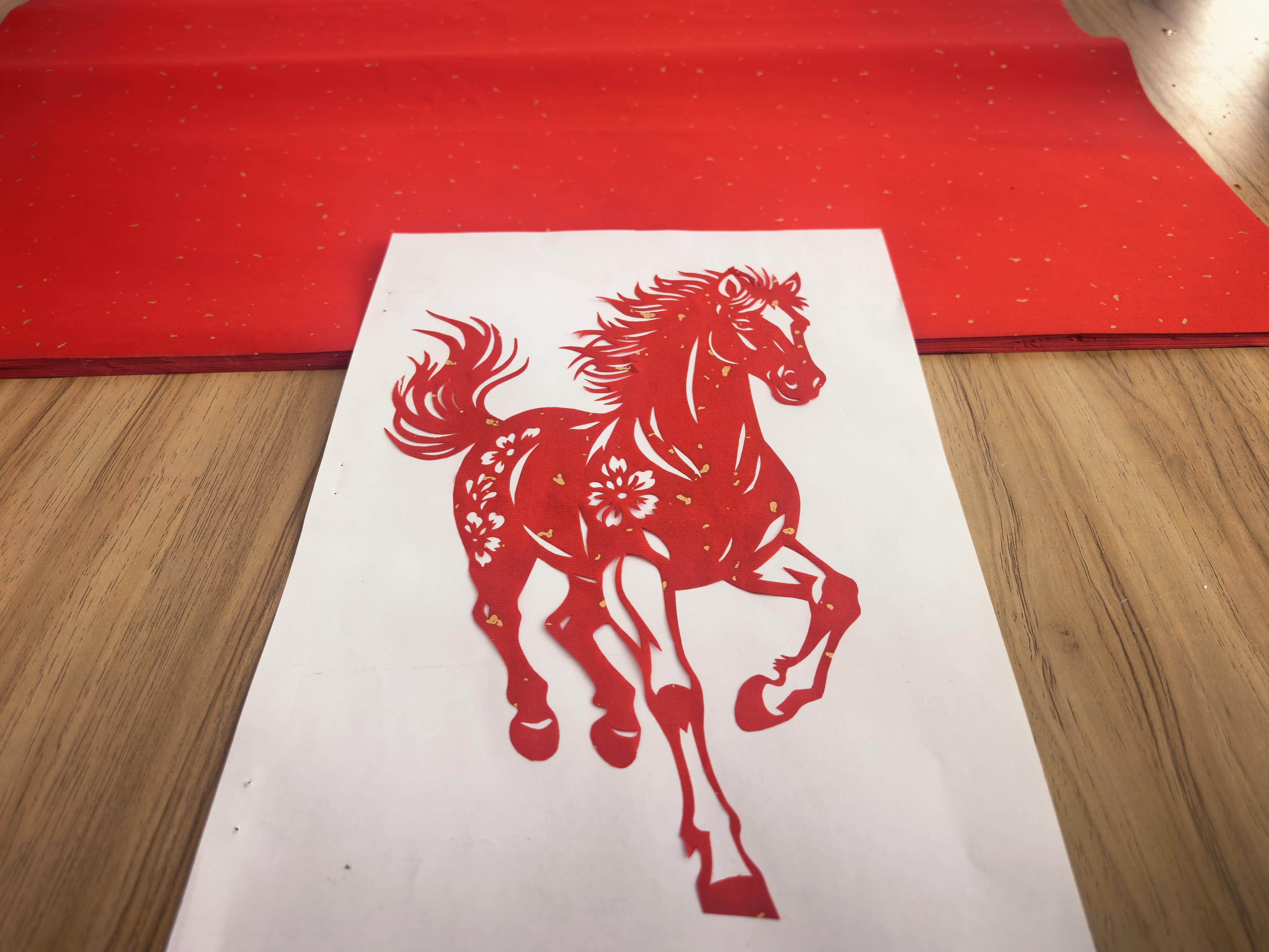 另一邊,一年級(jí)的沈夢(mèng)陽(yáng)正努力控制著剪刀,沿著畫(huà)好的線條前進(jìn)。雖然線條稚嫩,但那匹“小飛馬”已初具神采。她笑嘻嘻地說(shuō):“今年是馬年,我要剪一匹飛奔的小飛馬送給我的好朋友,祝她新的一年里一馬當(dāng)先,馬到成功!”童言稚語(yǔ),卻精準(zhǔn)地道出了剪紙民俗中最核心的“吉祥敘事”功能。在這間工坊里,剪刀的“嚓嚓”聲與孩子們的歡笑聲交織,古老的技藝在幼小的心靈中播下種子,文化自信在親手實(shí)踐中悄然萌芽。