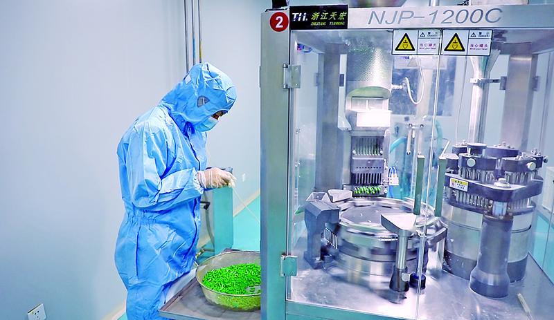 寧縣恒瑞康生物科技有限公司工作人員查看膠囊藥品。 通訊員 鄭倩紅 攝