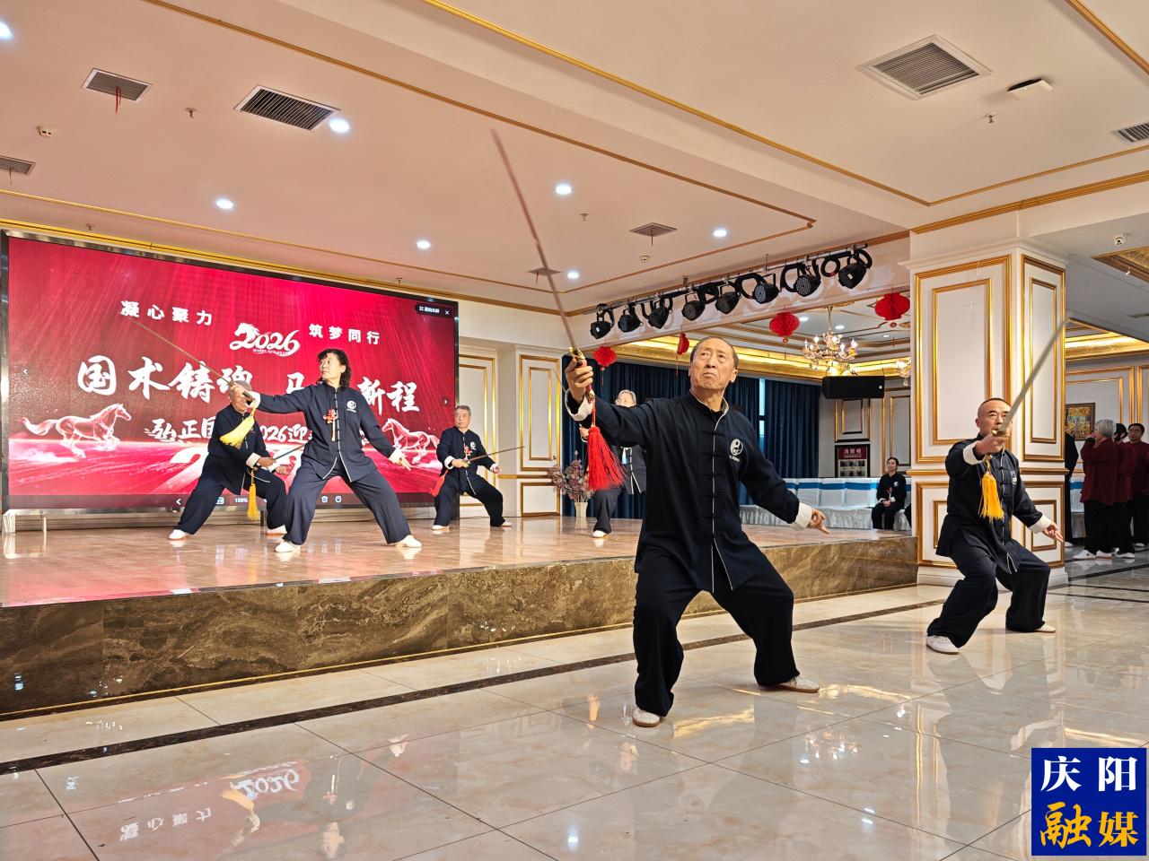慶陽網(wǎng)訊(慶陽融媒記者 徐嘉英)1月17日,弘正國術(shù)培訓(xùn)學(xué)校在西峰區(qū)舉行太極拳展演活動(dòng)。15支參演隊(duì)伍、100余名太極拳愛好者齊聚一堂,以柔克剛的拳法與和諧統(tǒng)一的動(dòng)作,展現(xiàn)了中華傳統(tǒng)武術(shù)的獨(dú)特魅力。