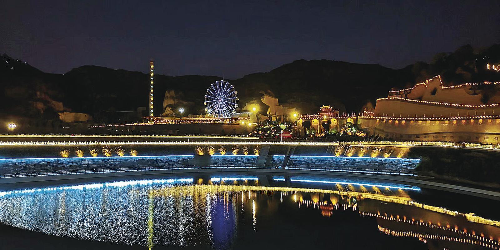 藥王洞養(yǎng)生小鎮(zhèn)夜景。 慶陽(yáng)融媒記者 李云 攝