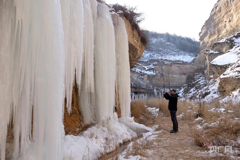 黃土塬驚現(xiàn)冰瀑奇觀(央廣網(wǎng)發(fā) 盤小美 攝)