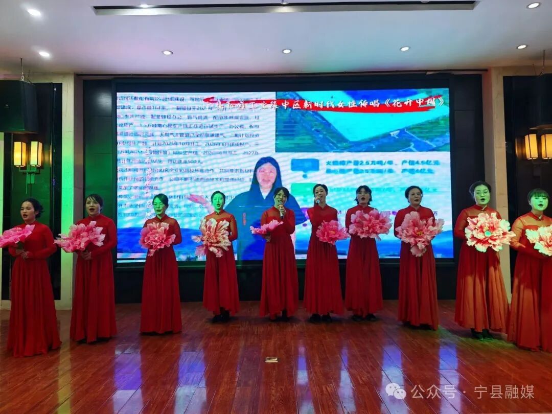 活動現(xiàn)場,與會領(lǐng)導(dǎo)還為慶陽市勞動模范李瑩、趙大偉獻(xiàn)上鮮花,致敬他們在平凡崗位上的堅(jiān)守與奉獻(xiàn),激勵(lì)全體企業(yè)家以勞模為榜樣,勇于創(chuàng)新、擔(dān)當(dāng)作為。文藝表演環(huán)節(jié)更是精彩紛呈,園區(qū)舞蹈愛好者帶來的《送祝?!贰饵S河水從我家門前過》充滿鄉(xiāng)土氣息與新春喜悅;企業(yè)職工演繹的《敬業(yè)陣線聯(lián)盟》展現(xiàn)了產(chǎn)業(yè)工人的奮進(jìn)姿態(tài);獨(dú)唱《隱形的翅膀》《紅日》等曲目贏得陣陣喝彩,9人合唱《花開中國》更是將活動氛圍推向高潮,歌聲中飽含著企業(yè)職工對美好生活的向往與對園區(qū)發(fā)展的祝福。