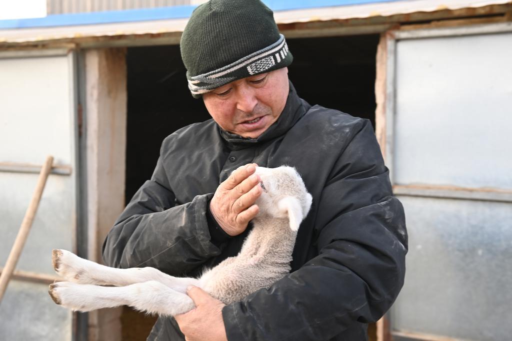 1月21日,在天??h松山鎮(zhèn)達(dá)隆村,楊文查看羊羔長勢情況。新華社記者范培珅 攝