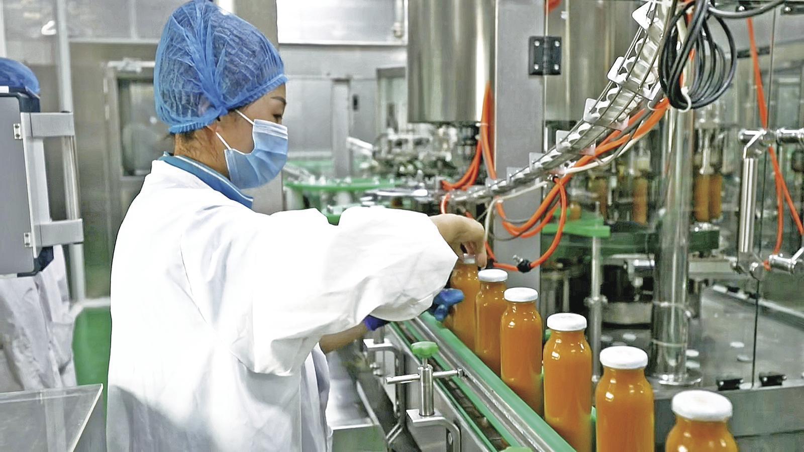 工人在包裝“花池臻品”沙棘汁。