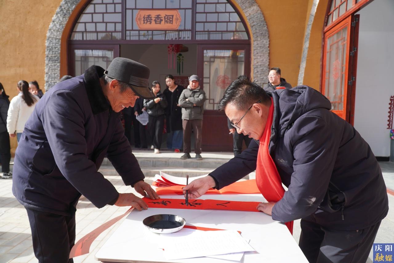 日頭漸高,暖意愈濃。帶著臘八的香甜與溫馨,村民們?nèi)齼蓛呻x席。有的圍在傳統(tǒng)剪紙藝人身邊細(xì)細(xì)觀摩,有的排隊(duì)等待領(lǐng)取心儀的春聯(lián)?!敖瘃R迎春春入戶,祥風(fēng)報喜喜臨門”“馬年好運(yùn)隨春到,家業(yè)興旺逐日升”……墨香四溢間,村民們接過紅彤彤的春聯(lián),小心翼翼卷好,笑容里滿載著對新年的憧憬。