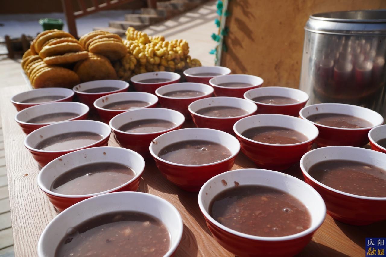 慶陽網(wǎng)訊(慶陽融媒記者 路世玲)臘八節(jié)清晨,凜冽的寒氣包裹著隴東黃土高原。合水縣店子鄉(xiāng)雙柳樹村的游客接待中心小院里,卻早已熱氣升騰,年味十足:灶膛油鍋翻滾,金黃的油餅、麻花“滋滋”作響;大鋁鍋里,臘八粥咕嘟咕嘟冒著泡;濃郁的玉米香混合著燃面的鮮甜氣息,交織升騰,仿佛一年中最熱鬧的節(jié)慶序曲已然奏響。