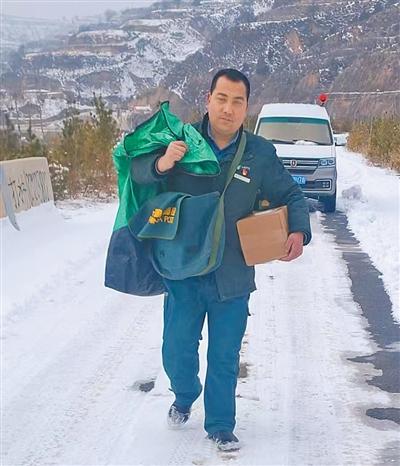 “今天下雪,車最多開到半山腰,后面的路還得靠腿走,所以得早點出發(fā)。”趙元瑞說著發(fā)動了車。作為鎮(zhèn)里的郵遞員,趙元瑞幾乎天天在溝壑縱橫、山路起伏的山梁間往返,這一條條熟悉的郵路,他已經走了20多年。10多個行政村、上百個自然村,哪段路不好走,哪戶人家常年在家,他心里都有數。